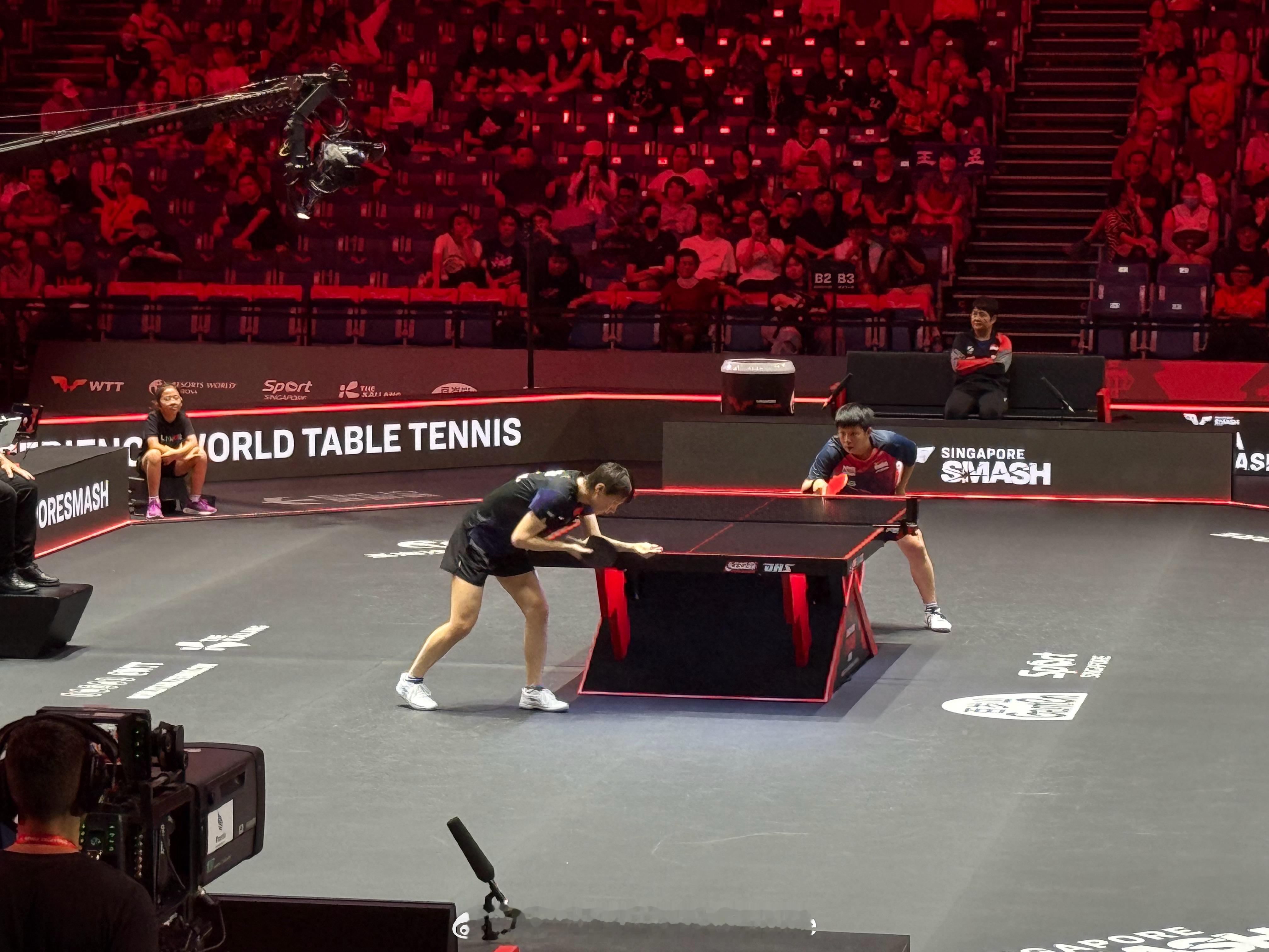 在现场王曼昱3比0曾尖 新加坡·新加坡室内体育馆