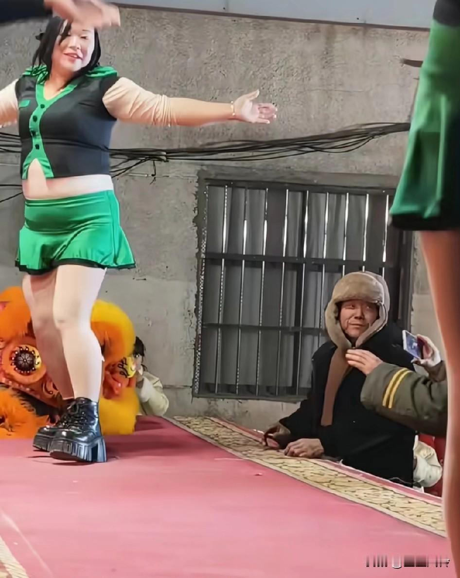 演出现场女子在台上跳舞,俩大爷在台下近距离观看,伸手想摸,事实证明大爷还是喜欢有肉的 年龄大的有些男人真让人无语,年轻时候估计也这样。台上的大妈心里高兴极了,有人肯定她的美,那肯定开心的。这就是:为老不尊!老不正经!有没有可能是村里的老光棍都出来了,这么大岁数了,还色的这么明目张胆老头。快急死了,看得着摸不着。