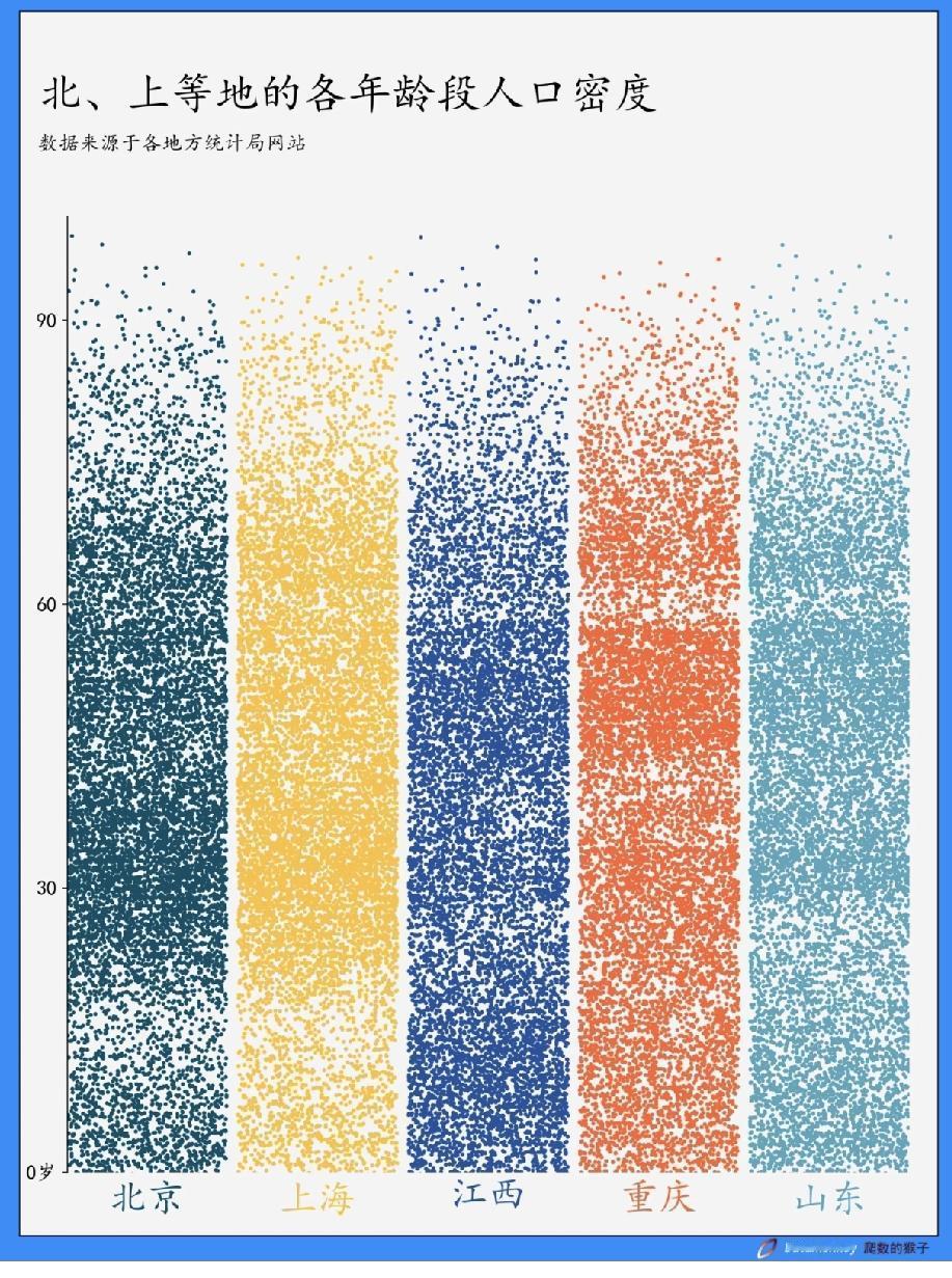 北、上等地的不同年龄段人口密度,80后确实是主力[捂脸]