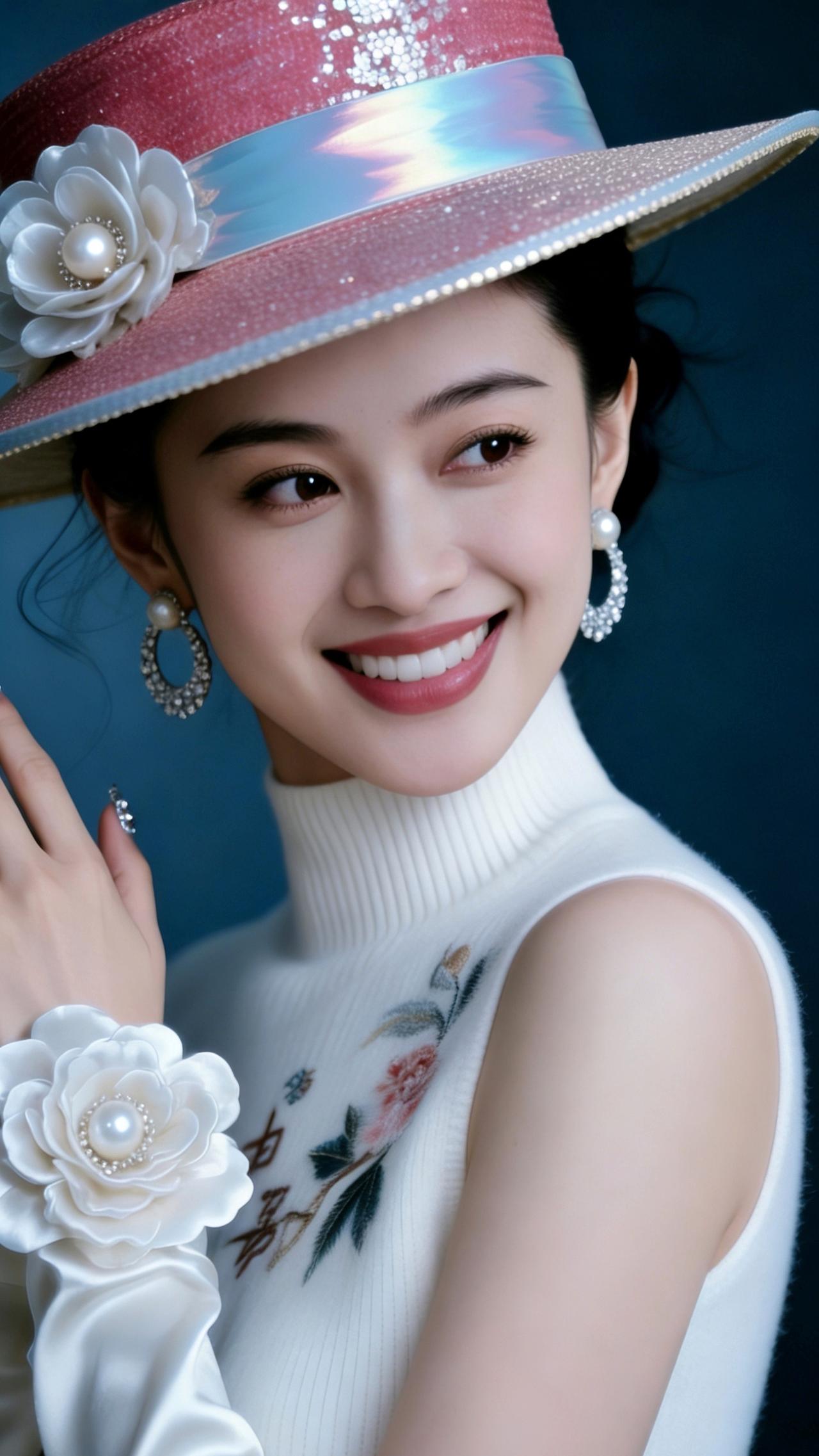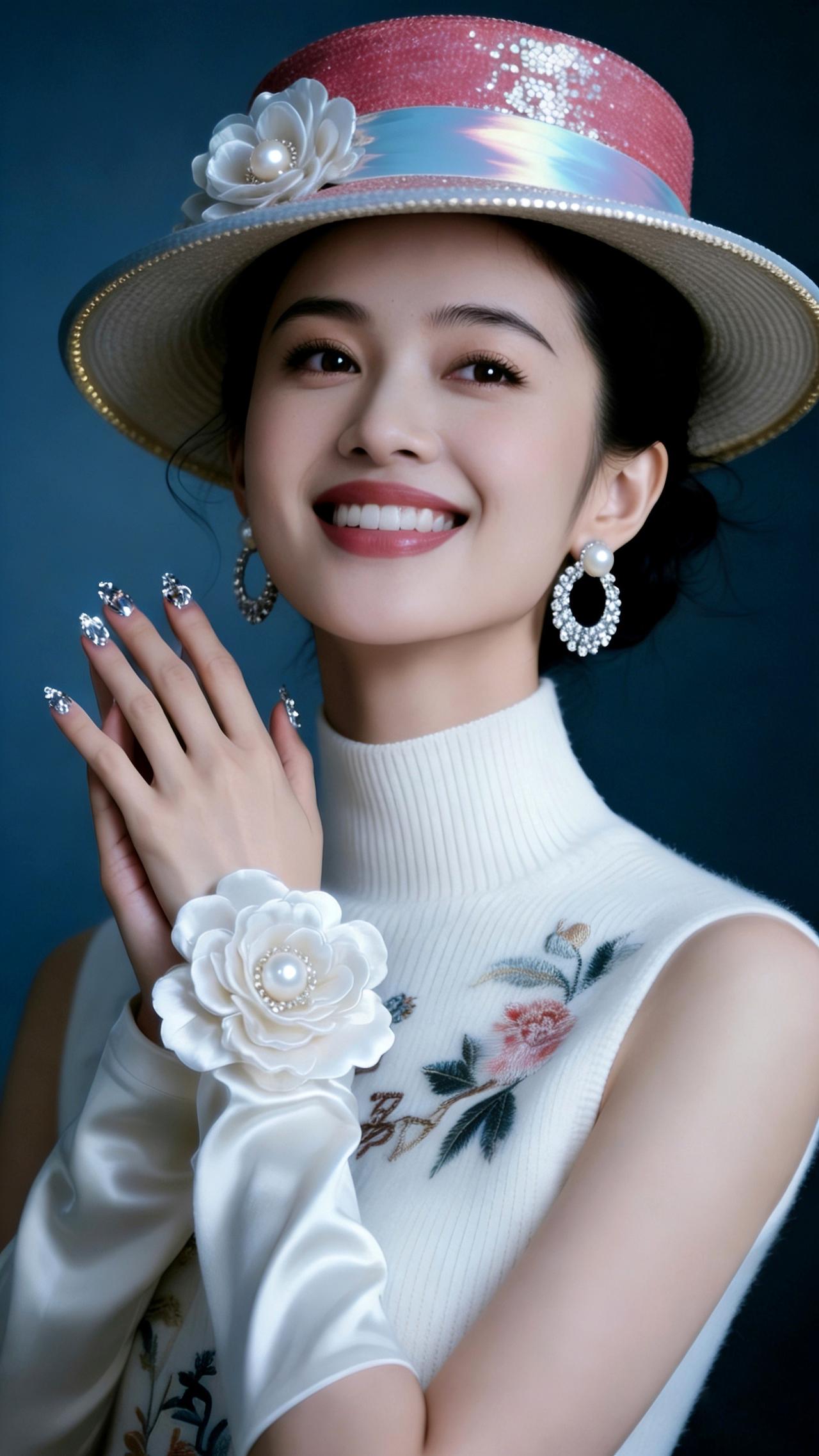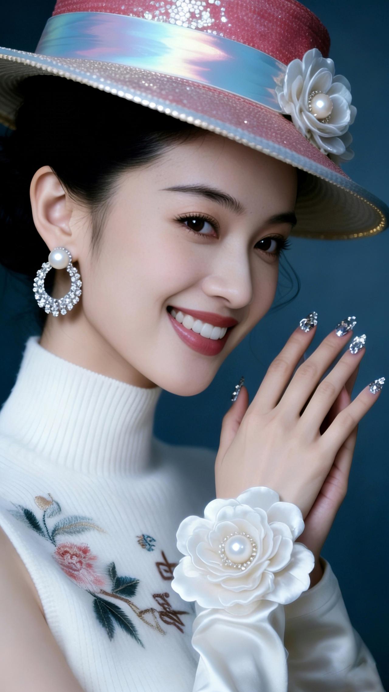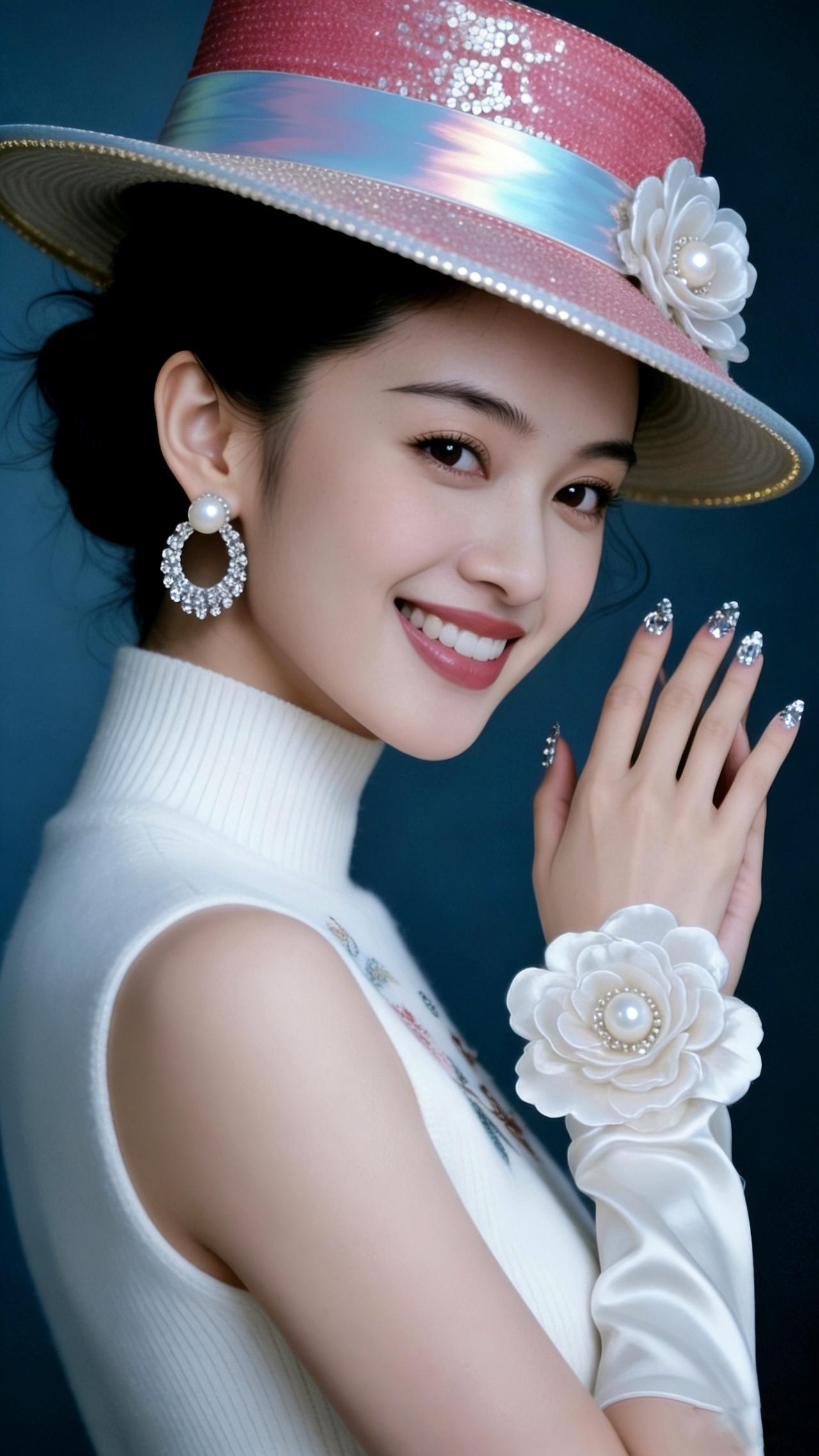 九帧同绘粉帽雅仙。粉帽缀白花珍珠亮片,白衫绣卉显雅姿,珍珠圆环耳腕饰添华。眉眼含笑温婉醉,深蓝衬复古仙韵,指尖钻饰耀柔光。如画中佳人踏春来,一眼沦陷! 图片为Al辅助完成,请注意甄别! 你最喜欢的手机壁纸什么样