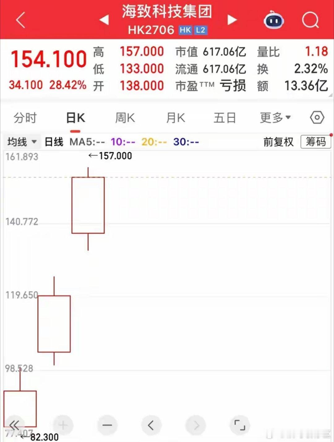 同是AI应用软件大模型新股的海致科技集团才上市三个交易日,也出现了连续大涨的走势,该股发行价27.06港元,上市当日高开高走大涨242.20%,次日大涨29.59%,上一个交易日大涨28.42。