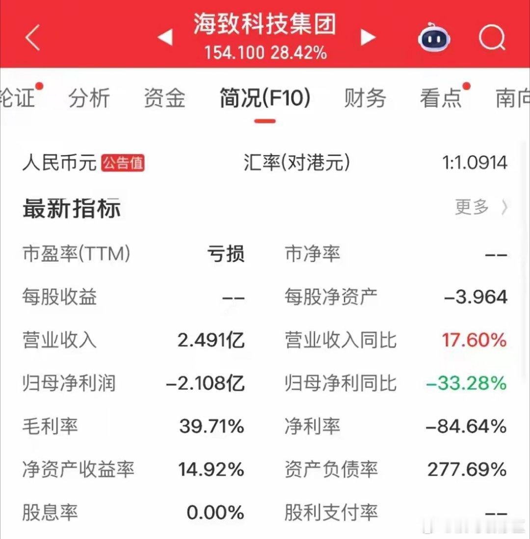 股价已涨到154.10,上市三天大涨571%。而这也是一家亏损公司,每股净资产亏3.964,归母净利润亏2.11亿,公司总营收2.49亿,公司市值已涨到617亿。