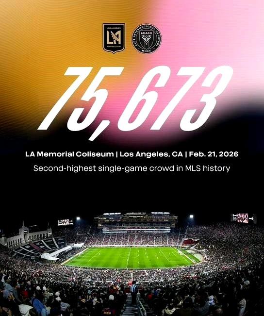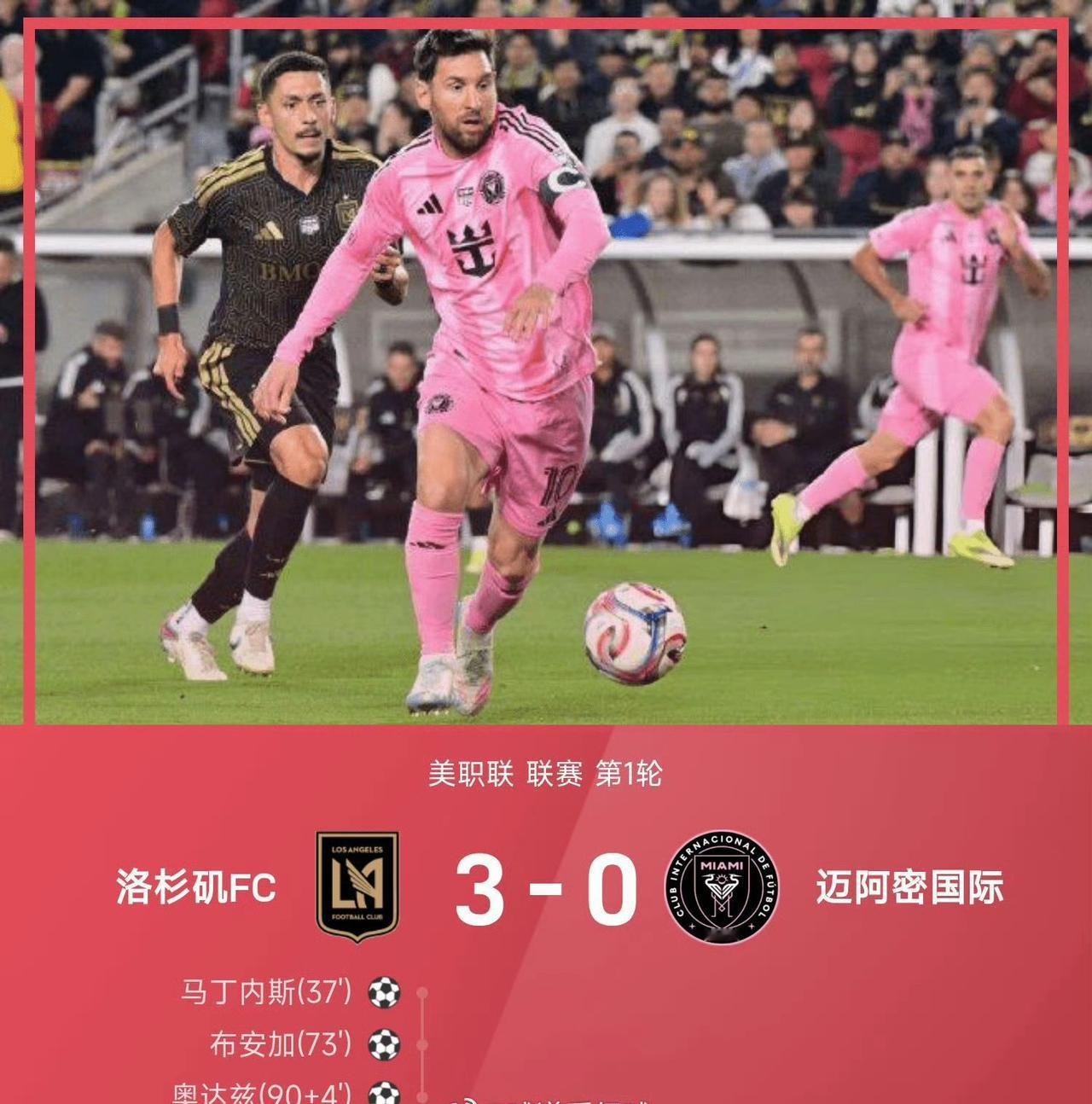 2026美职联揭幕战,洛杉矶FC对阵迈阿密国际,实在没想到: 1、上赛季美职联总冠军迈阿密国际居然会以0-3不敌洛杉矶FC。尽管洛杉矶有韩国球星孙兴慜。 2、本场比赛居然吸引了75673名观众到场观战。美职联历史上,单场观众入场数排名第二。 3、踢满全场的梅西居然碌碌无为,没有助攻没有进球,怪不得迈阿密国际会大败。