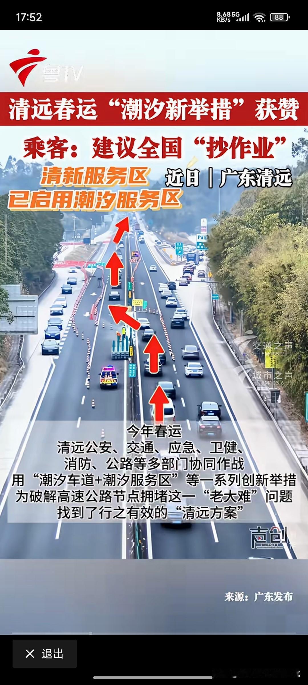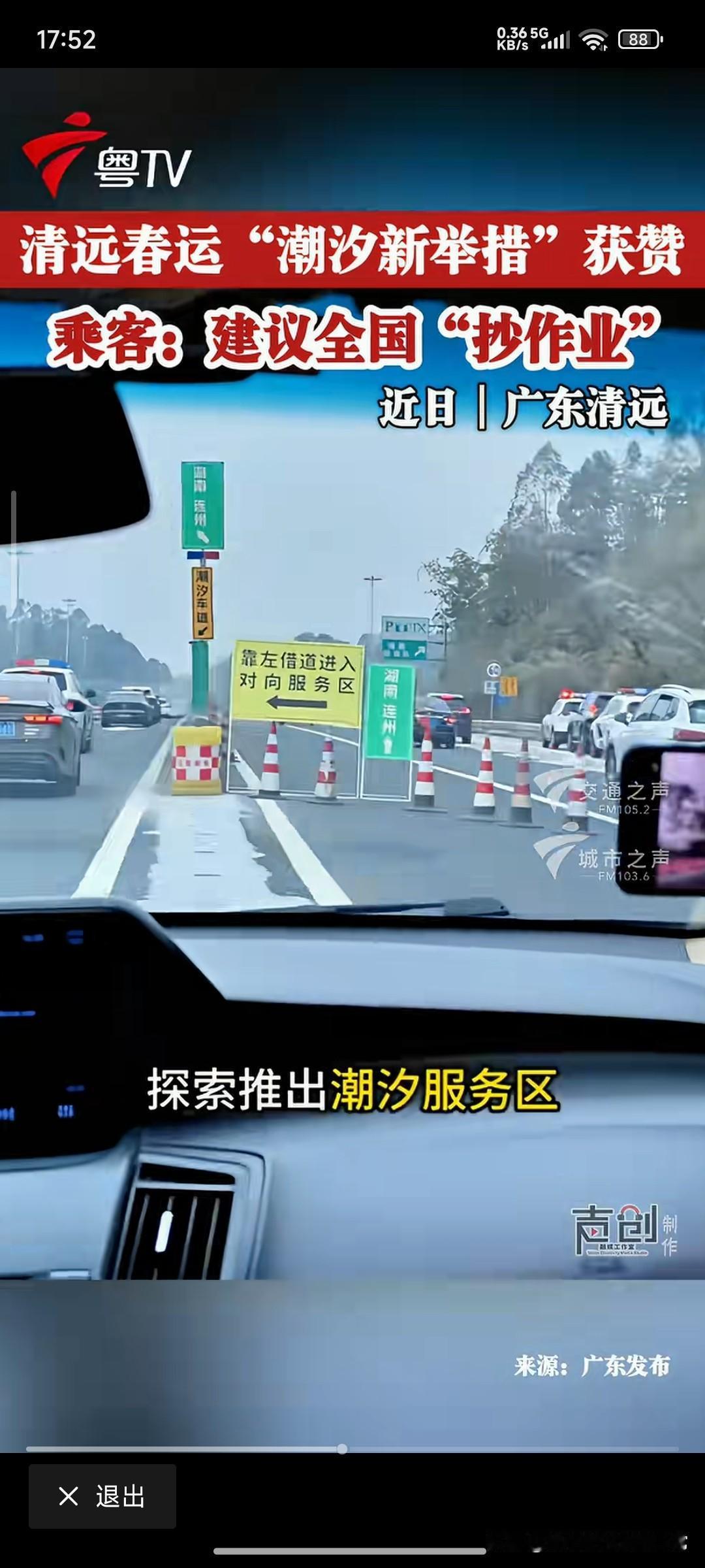 建议全国“抄作业”!清远高速放大招, 把司机们都整哭了😭 今年春运,广东清远交警干了件大事,直接把“潮汐车道+潮汐服务区”玩明白了! 当大家还在高速上堵得怀疑人生,连上个厕所都要排几百米队的时候,清远清新服务区直接“反向营业”:当一侧服务区爆满,就开放对向车道,让车辆借道进入对面服务区。 这操作,直接把“上厕所难、加油难、停车难”的春运痛点给解决了! 有司机大哥激动地说:“哪个发明的,必须给他重奖!”还有大姐捧着热水杯说:“今年服务真不错,比往年好太多了!” 这思路,简直是把“以人为本”刻进了DNA里。难怪大家都喊着要全国“抄作业”! 有时候,解决问题不需要花里胡哨,就看有没有真正站在老百姓的角度想问题。