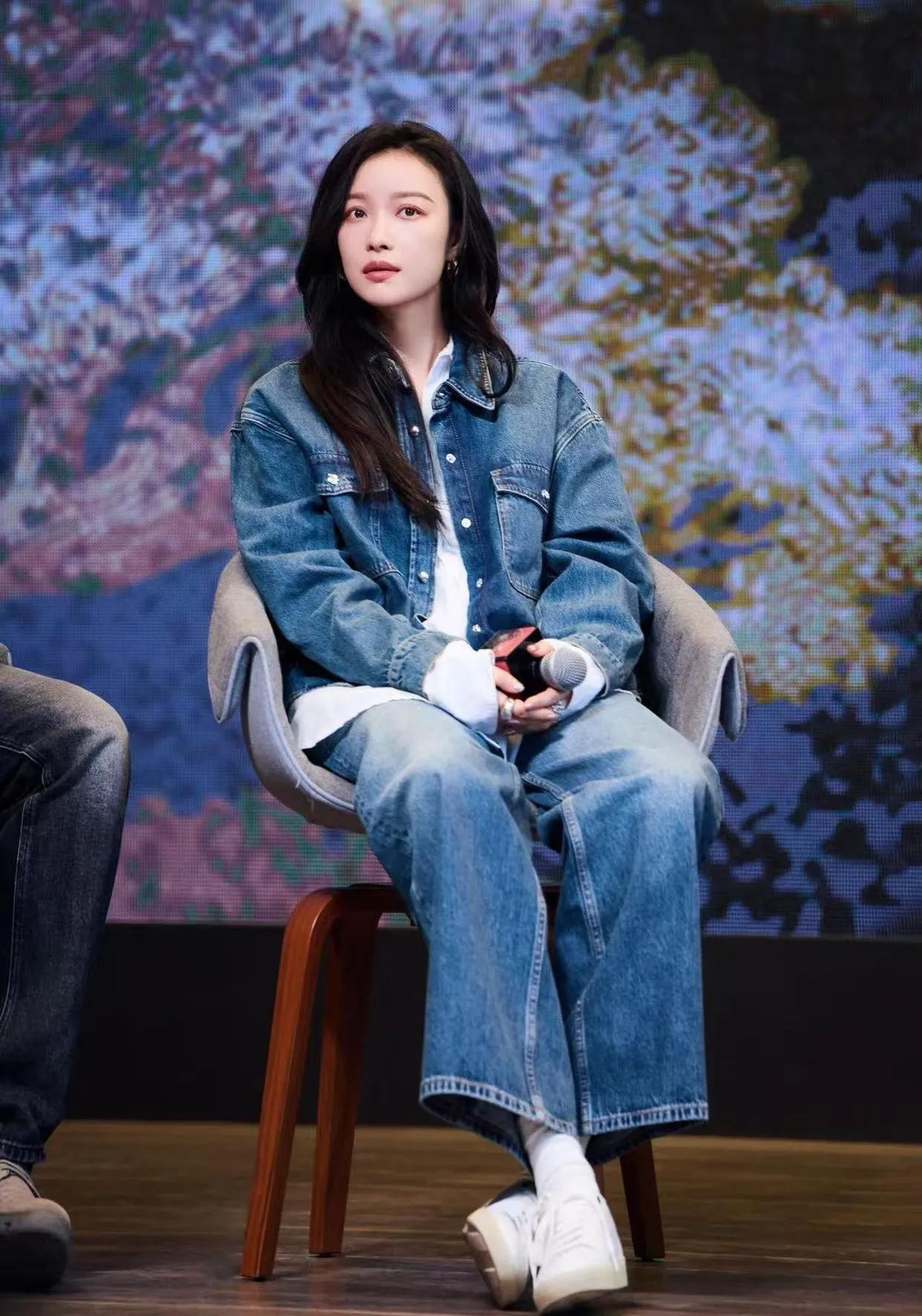 倪妮这套牛仔穿搭封神!👖 宽松牛仔套装内搭白衬衫,松弛感拉满。 慵懒又随性,这气质真的没谁了~ 倪妮 明星穿搭 牛仔套装