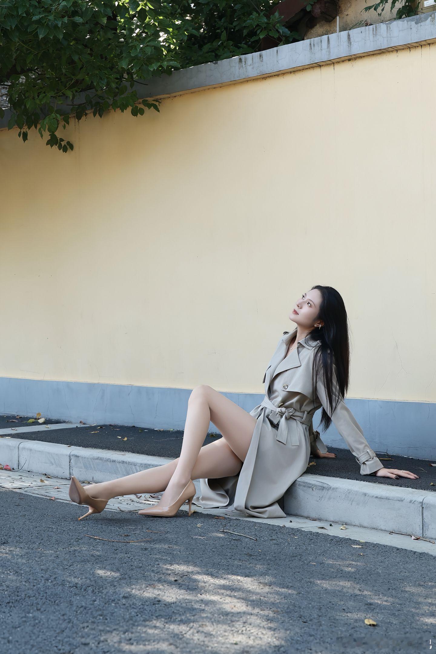 今天街拍图一组,得拿出来单讲。就这张,姑娘往木窗框上一靠,不是那种死靠,是腰