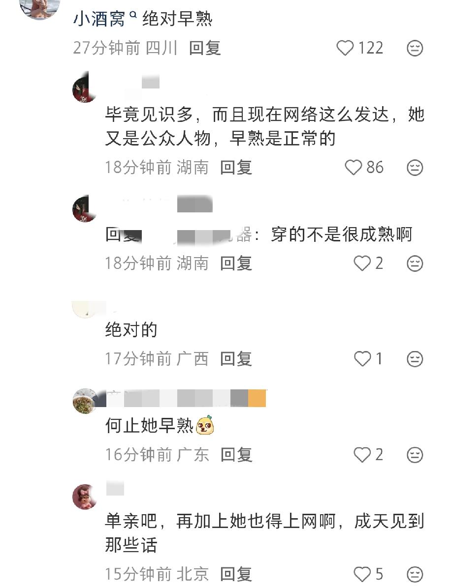 董璇完全就是把酒窝按童星在培养。 不到10岁,就让她开通了自己的微博账号。 别的明星二代在这个年龄,基本都还没开通自己的社交账号。 比如邓超的闺女儿子们,佟丽娅的儿子,佟大为的三个孩子。 有的甚至连脸都还没暴露过。 比如谢娜的大女儿。 但是酒窝不仅开了个人微博,而且互动也非常的娴熟老练。 拍照时,表情和动作也总是显得成熟世故,没有这个年龄的孩子该有的童真。 这也不能怪酒窝,单亲➕出道早,她不得不早早学习成人世界的social。