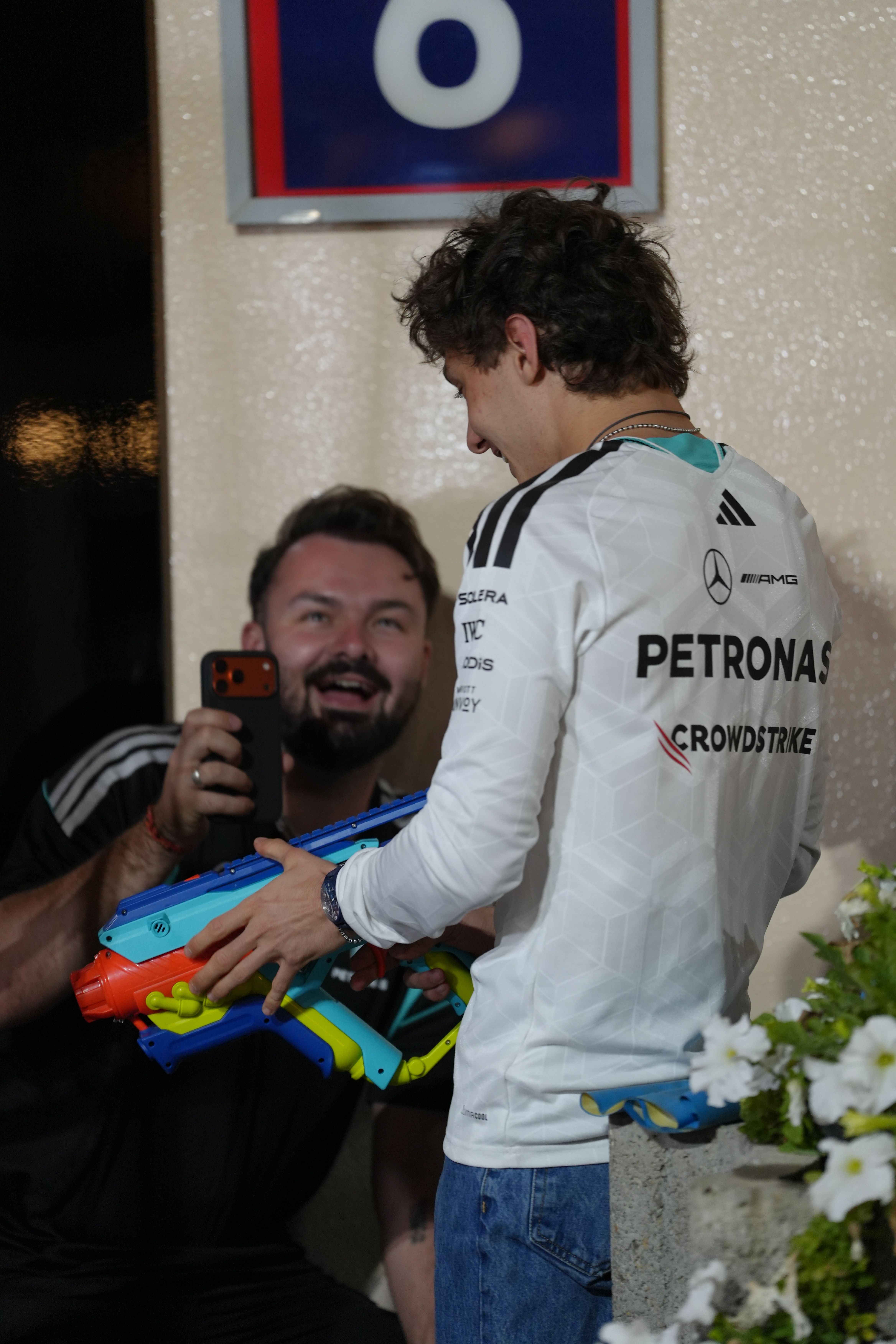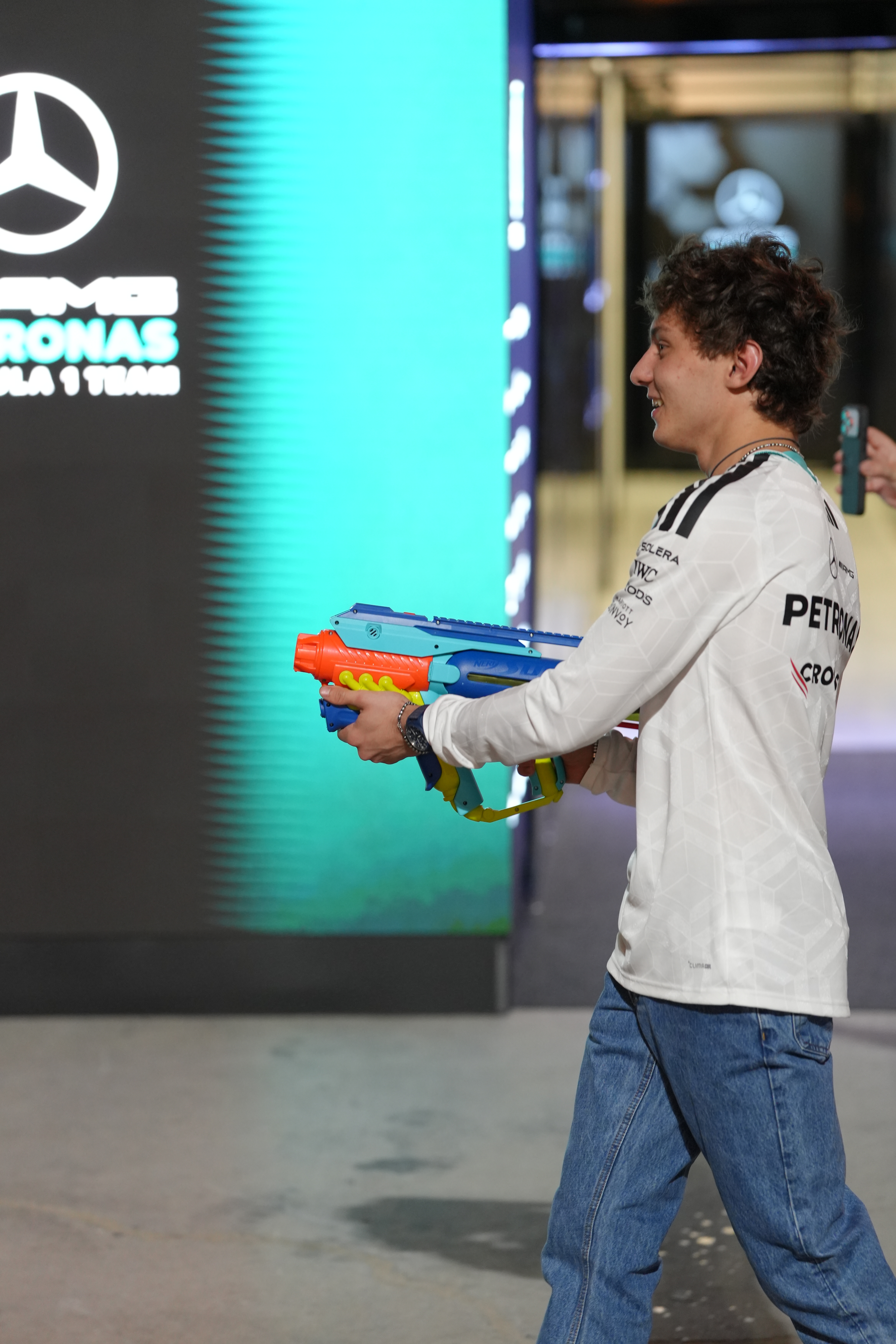 安东内利在巴林现场的水枪大战瞬间📸F12026F1季前测试