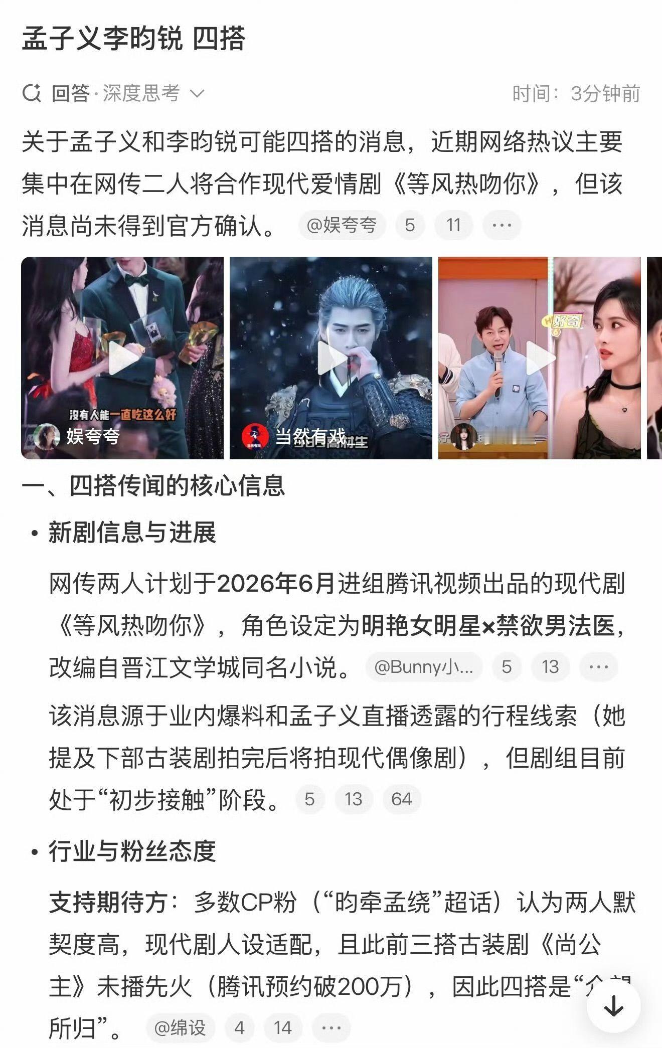 孟子义李昀锐 四搭我真的太支持孟子义、李昀锐四搭了戏里戏外都好甜,眼神里全是心动