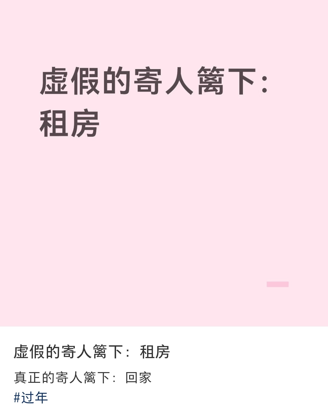 虚假的寄人篱下,租房。真实的寄人篱下,一些畸形的家庭