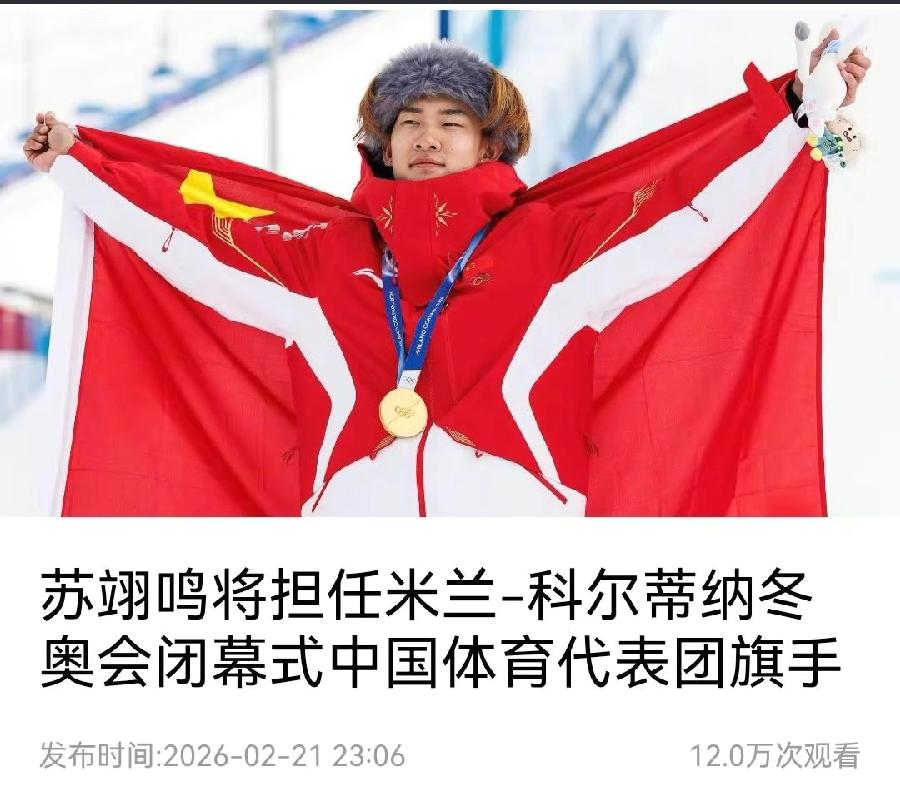 苏翊鸣担任冬奥会闭幕式中国旗手!安排非常合理,1金1铜,还是中国本届首枚金牌,若论价值含金量,其实宁忠岩1500m速滑金牌,打破欧美102年垄断,更有历史意义,但是宁忠岩已经担任过开幕式旗手了,不能一个人都同时担任了,所以要兼顾一下!中国代表团本届冬奥会,取得了境外参赛最好成绩,可喜可贺!中国奥运队继续加油!