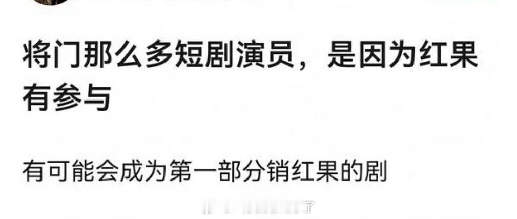 网传将门那么多短剧演员,是因为红果有参与,有可能会成为第一部分销红果的剧,真的假