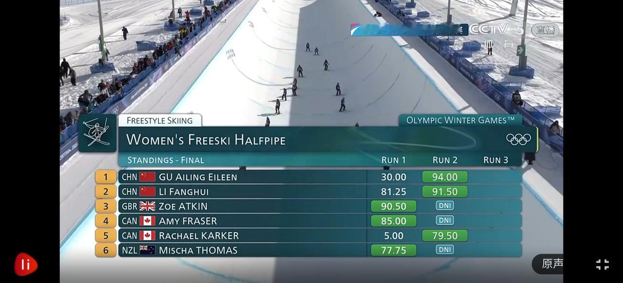 第二轮滑完,排名出来了,谷爱凌跃居第一,李方慧跃居第二。 米兰冬奥会最后一个项目的金牌大概率是谷爱凌的。