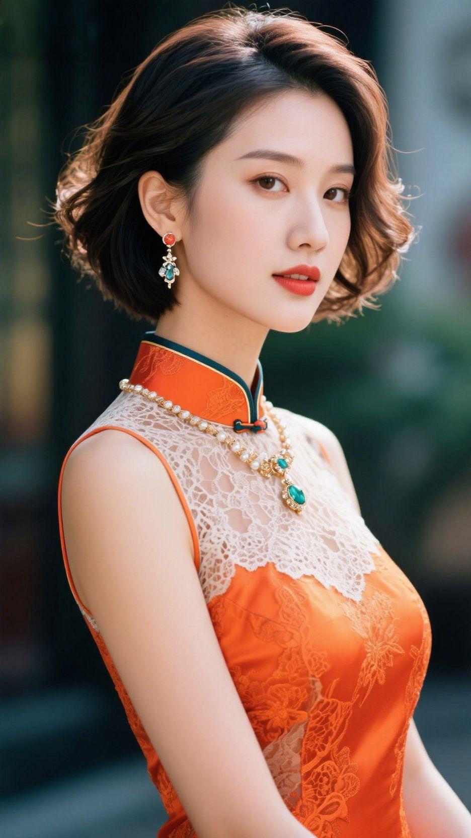 东方雅韵,岁月沉香 朱红旗袍如霞色染就,缂丝暗纹流转着江南的温婉。珍珠项链垂落的光泽,似晨露凝于玉颈,耳间的宝石轻晃,映出眼底的柔光。短发利落,却藏不住从旧时光里漫出的雅致,风过巷陌,她的身影便成了一幅流动的水墨,让喧嚣世界,都慢了下来。