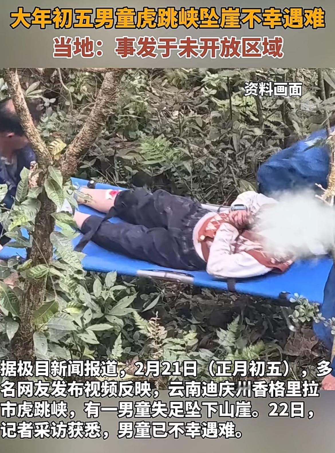 大年初五虎跳峡坠亡的男童,难道不应该追究不负责任的爸爸、奶奶的责任吗?擅自闯入未开发的虎跳峡区域,仅1米宽的悬崖小道,一面就是深达上千米的金沙江谷底,8岁孩子不懂危险,难道大人不懂吗?什么被风刮下去的,这个理由就是骗鬼,反正孩子死了,也没有目击证人,随便他们瞎说。难怪大家对于孩子的死,有诸多疑问。一家人出游,独独不见妈妈,但凡正常家庭,不可能撇下妈妈,跑出去玩。男童坠河