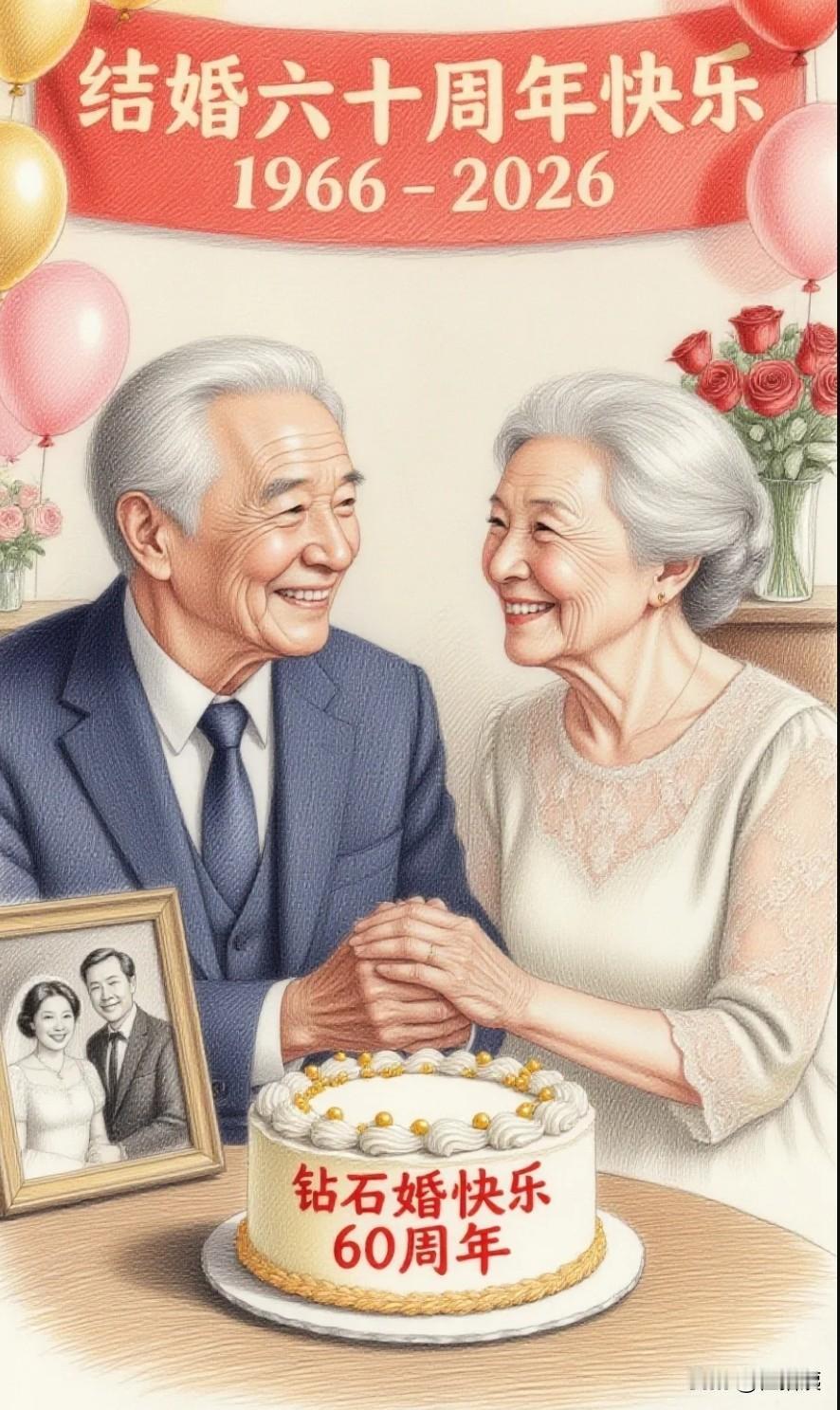 今天,大年初六,是爸爸妈妈结婚六十周年的纪念日[比心] 六十一甲子,两万多个日夜,在岁月长河里不算漫长,却足以让青丝变成白发,让青涩的爱情沉淀为血脉相连的亲情。 我常常在想,什么是最好的婚姻,答案一直都在你们身上。 是爸爸的包容与担当,是妈妈的温柔与坚韧;是柴米油盐里的互相迁就,是风雨坎坷中的彼此搀扶;是年轻时一起吃苦打拼,年老时一起散步闲谈;是吵过闹过却从未想过离开,是平凡日子里始终把对方放在心上。你们从没有说过太多浪漫的情话,却用六十年的陪伴,把“执子之手,与子偕老”写成了最动人的现实。 从小到大,我是在你们的爱里长大的孩子。你们的家,永远是我最安心的港湾;你们的感情,永远是我对爱情与婚姻最坚定的信仰。因为见过你们相濡以沫的样子,我才懂得什么是责任,什么是珍惜,什么是细水长流的幸福。你们用一生的相守,为我树立了最好的榜样,给了我最踏实、最温暖的底气。 六十年钻石婚,是纪念,更是新的开始。作为女儿,我最大的心愿,就是你们身体健康、平安喜乐,少些操劳,多些舒心。愿未来的日子,阳光常照,岁月温柔,你们依旧相依相伴,笑看流年。 谢谢你们,做我的父母,给我生命,给我家庭,给我一生都取之不尽的爱与力量。 爸爸妈妈,钻石婚快乐,永远爱你们!