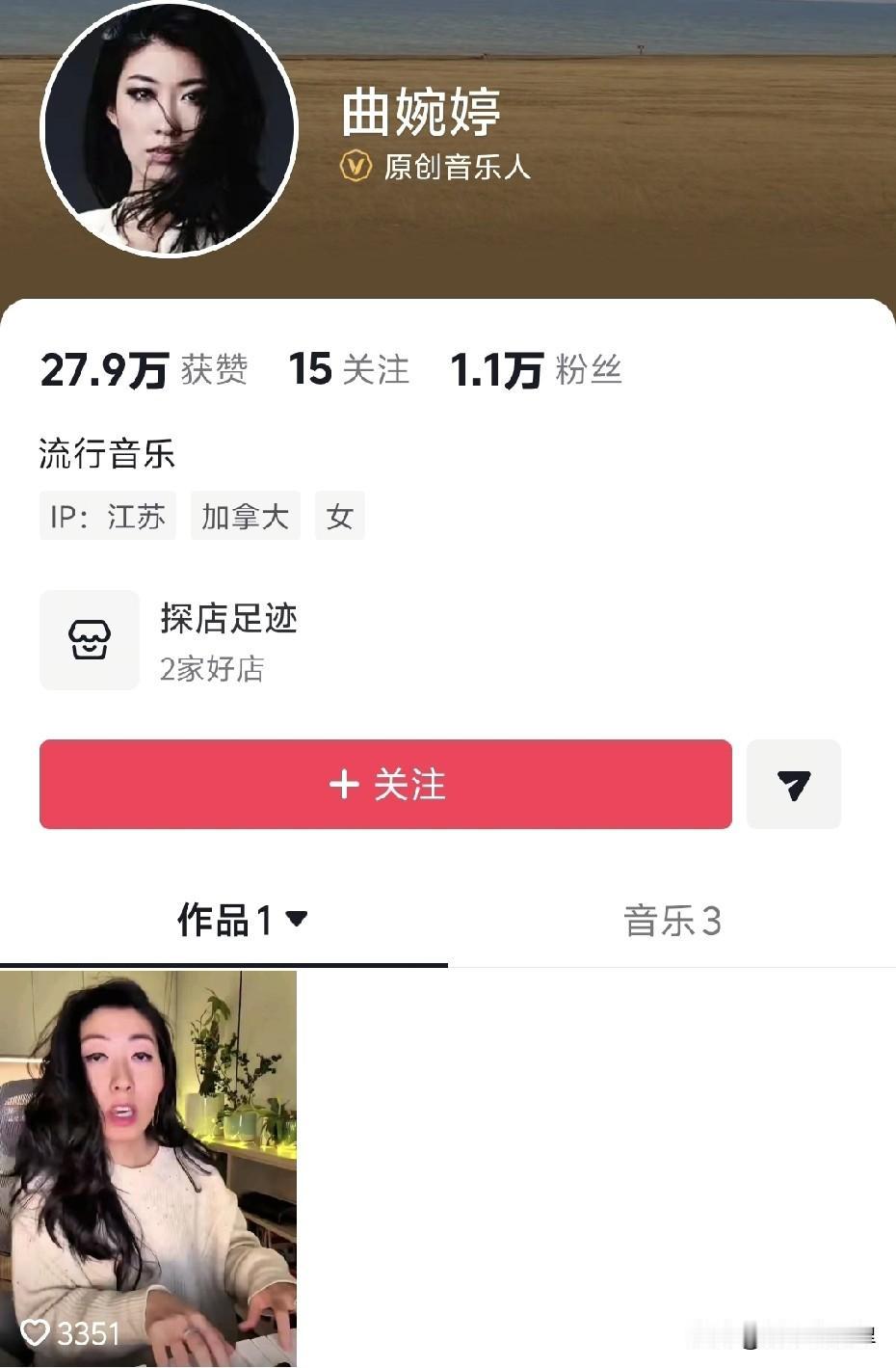 曲婉婷上了热搜立马就把抖音号换头像了,现在你直接搜索曲婉婷三个字,是看不到的,空白头像昵称数字“10498038”。 IP定位是江苏,但后缀有加拿大字样,看来曲婉婷是两地跑,要不就是工作室运营。 上午曲婉婷的账号还有自己的名字,是原创音乐人认证,这人脸皮太厚,自己妈做过的事不记得了,你吃饱了跑到国外。