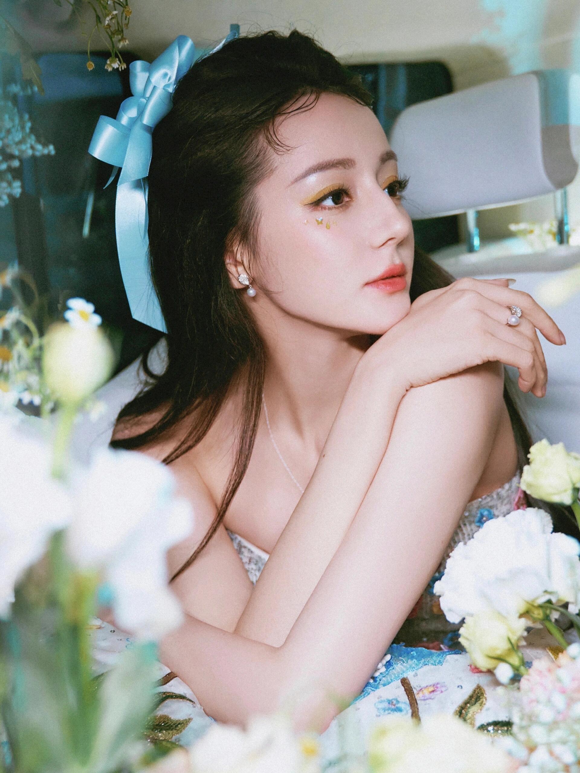 迪丽热巴绝美写真,穿花卉抹胸裙,性感浪漫!