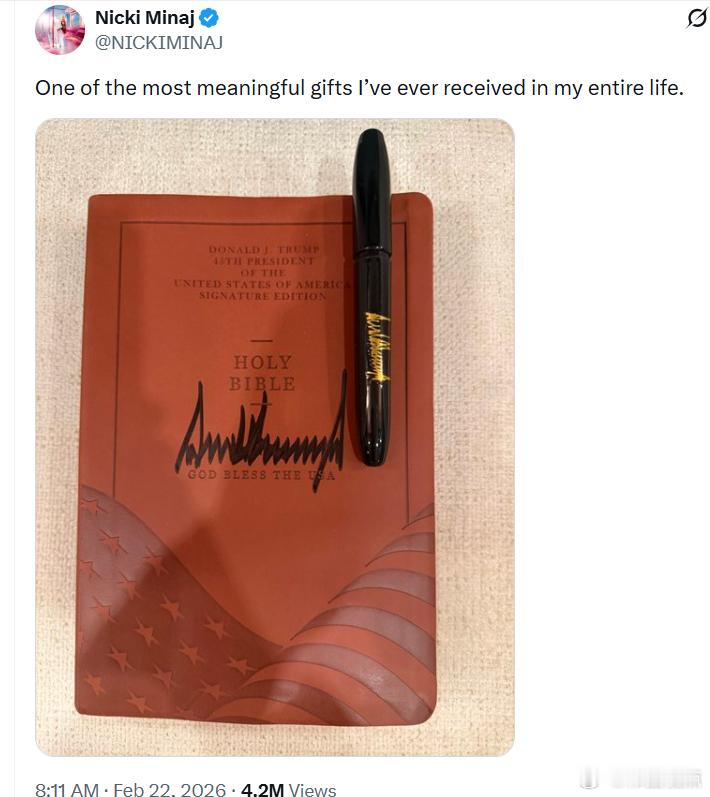 妮基·米娜:我一生中收到过的最有意义的礼物之一。
