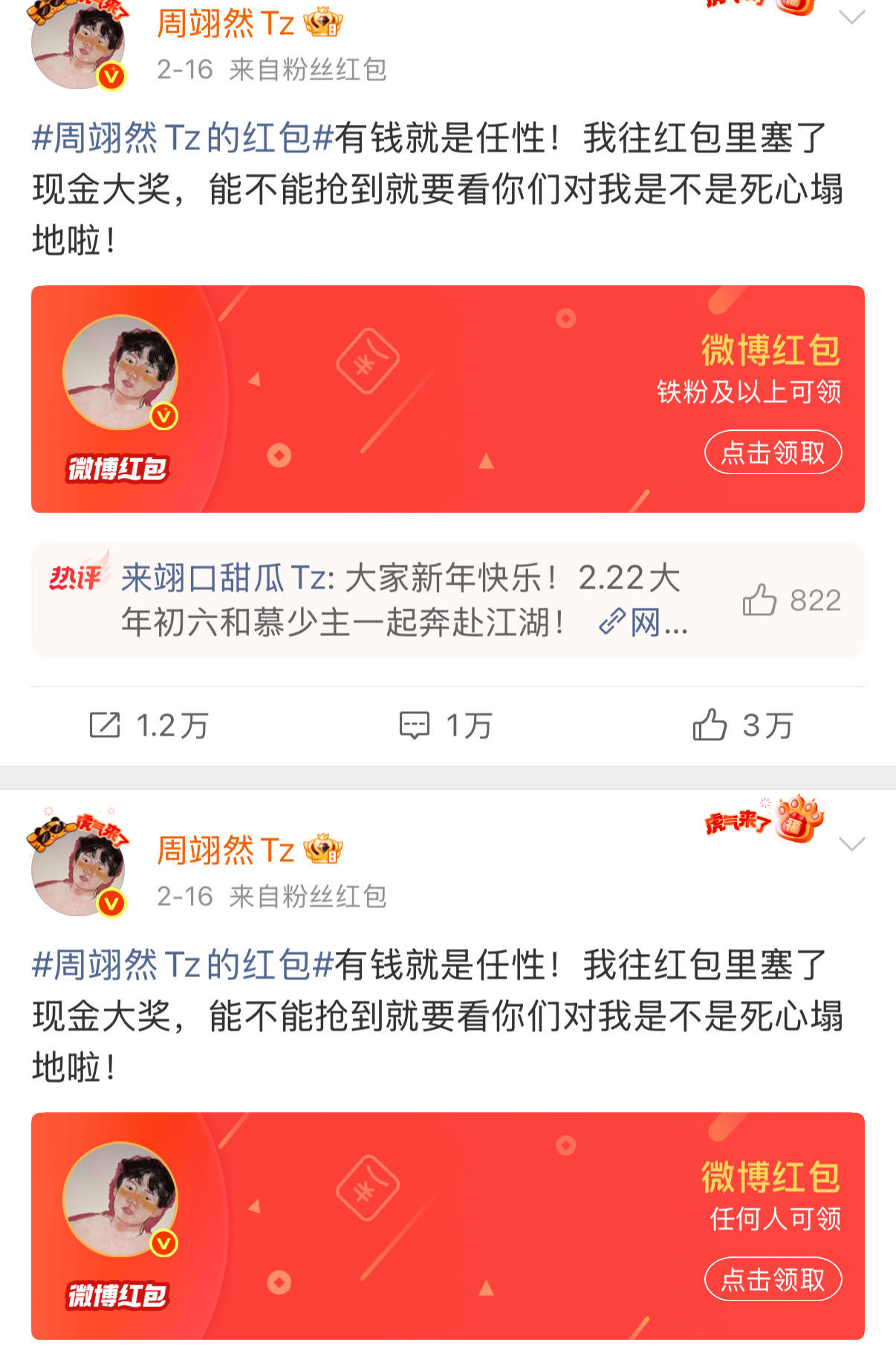 周翊然周翊然春节发了10万红包周翊然 红包博主周翊然空降微博发红包,邀请大家一起