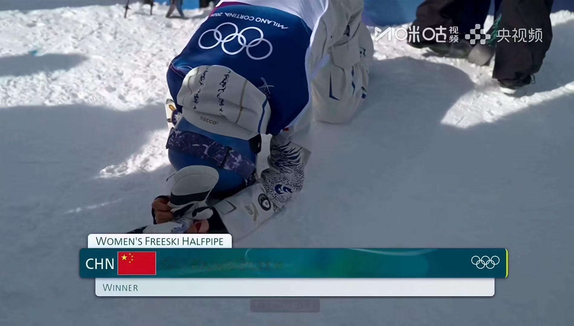 【#刘佳宇摔倒受伤担架抬出场#】2月11日米兰冬奥会单板滑雪女子U型场地技巧预赛