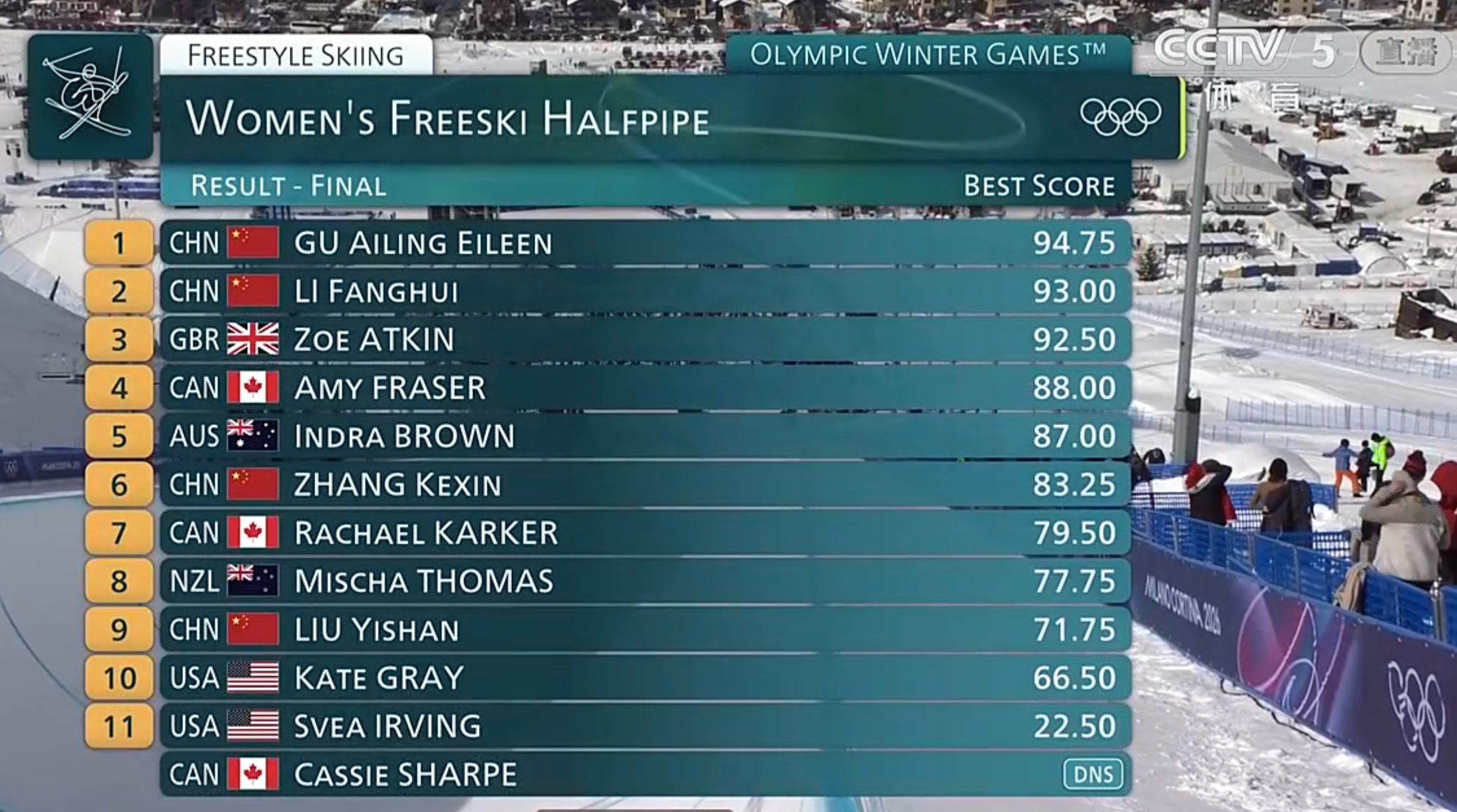 谷爱凌为中国体育代表团拿到第五金,李方慧银牌!