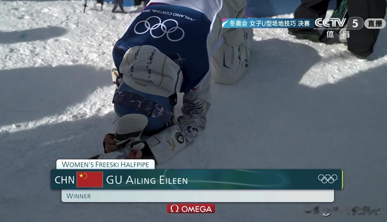 中国滑雪名将谷爱凌真是太牛掰了!在今天结束的米兰冬奥会自由式滑雪女子U型场地技巧决赛中,中国选手谷爱凌以94.75分的高分赢得了金牌,从而实现了在该项目上的卫冕。值得一提的是,另一位中国选手李芳慧以93.00分的成绩获得了银牌,两位中国选手的表现都是极其的出彩。 让人特别感动的是,谷爱凌在赢得金牌之后情难自禁,只见谷爱凌双膝跪地忍不住泪洒当场。
