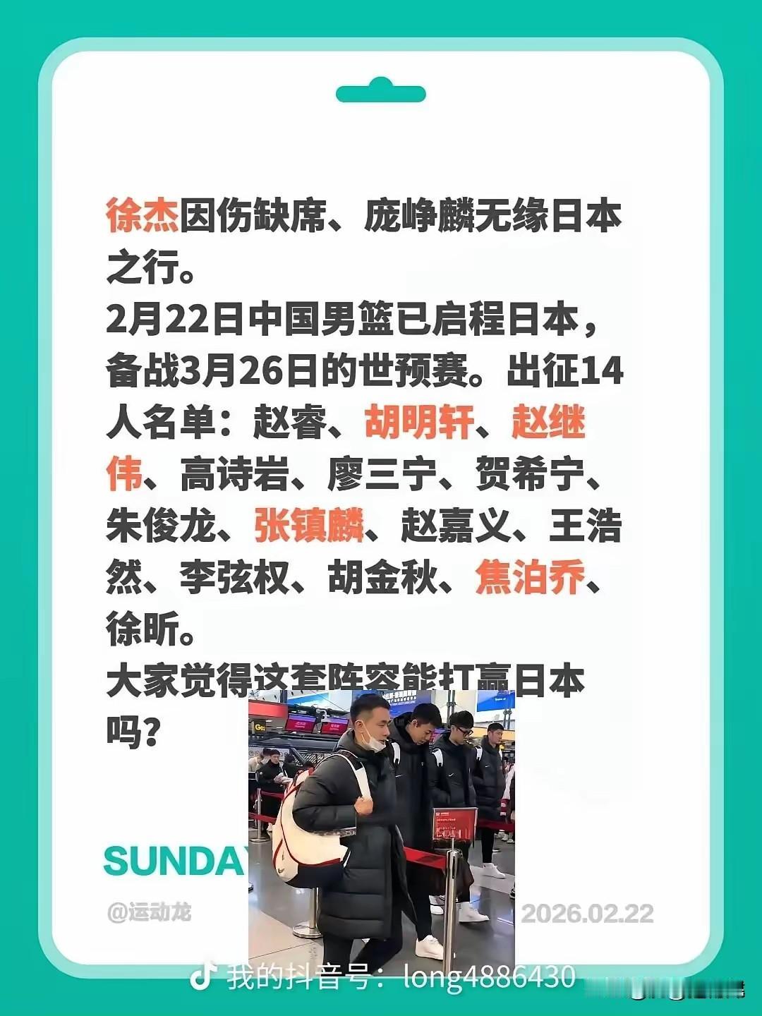 国内两大顶级后卫无缘世预赛大名单,郭仕强或另有考虑: 据北京媒体透露,中国男篮今天正式前往日本参加世预赛第二窗口的比赛,中国男篮将有14人飞往日本,而徐杰和庞峥麟无缘前往日本14人大名单,郭仕强或另有考虑: 徐杰和庞峥麟都是联赛顶级的后卫,徐杰不仅是组织能力一流,而且进攻手段花样很多,近期徐杰状态低迷也因为受伤病影响,考虑到国内联赛第二阶段的比赛,让徐杰回到俱乐部养伤也是无奈之举,同时也是给每一个球员健康的保证。 而庞峥麟的落选或是郭仕强最深思评估后决定的,庞峥麟确实是一名能力非常全面的球员,组织,进攻都非常出色,但是相比于赵继伟,胡明轩,赵继伟,高诗岩,国际大赛经验以及关键时刻的比赛阅读能力和对国家队战术体系理解能力可能会差一些,主教练郭仕强选择用熟不会生应该也是因为考虑到这一点。 当然,庞峥麟虽然无缘比赛大名单,但是仍不能否认他的个人能力,能入选国家队集训大名单已经对他个人能力的认可。