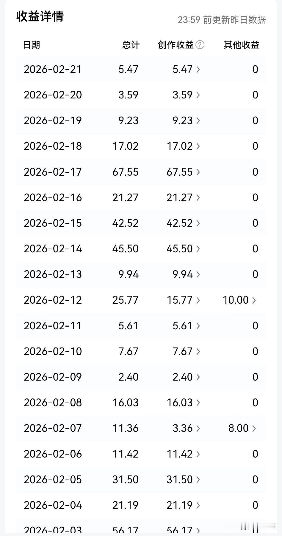 春节期间我也每天写头条, 每天发个2-3篇微头条,春节期间流量大,大家放假没事都来刷头条,收益明显增多。 春节我们一大家共8个人,我负责做饭和卫生,闲了就写头条。 其实我写头条并没有花费很多时间,上个厕所的空,几分钟一气呵成,200字左右的微头条。 有时和大家聊着天,我也就一篇微头条在说话间不知不觉诞生了。 看看收益,200块左右吧!还行,我也没想有多少,毕竟我也不是搞文字创作的人,没有专业领域的东西可输出,属于捡漏。 大家春节期间都赚了多少?