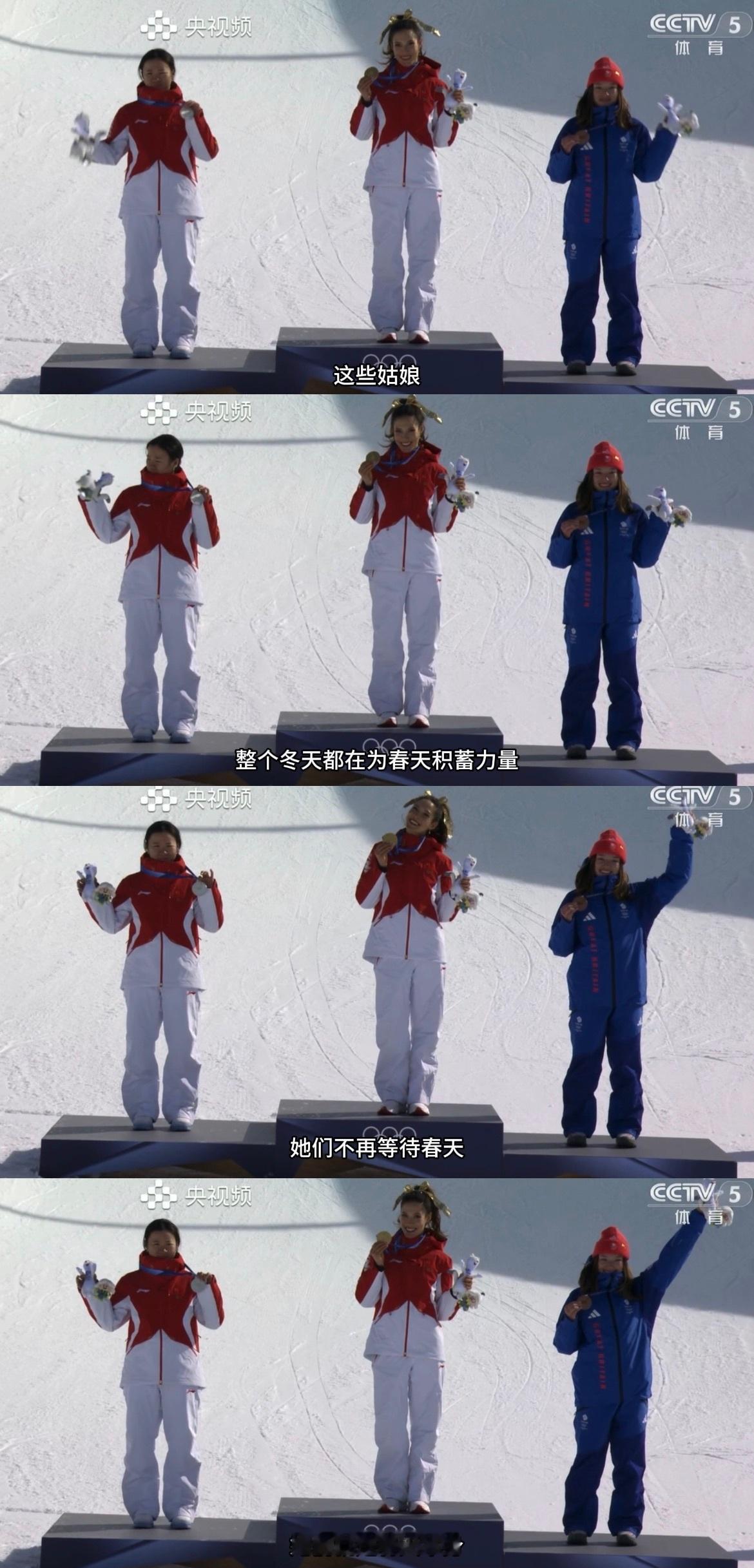 “这个冬天对谷爱凌来说有点长,这个春天来的有些含蓄,但是谷爱凌拿到了金牌。”