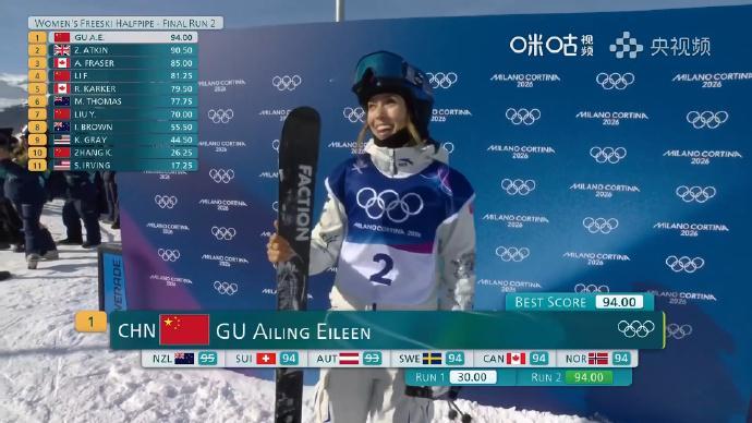 【谷爱凌心态太强大了】青蛙公主太稳了绝境翻盘!首滑失误后,谷爱凌第二滑彻底爆发,全套高难度动作流畅完美、落地稳健,裁判直接打出94.00分,强势冲上第一!历经多次延期与体能考验,她用顶级心态与实力证明王者归来,稳住节奏冲击金牌,青蛙公主太稳了! 谷爱凌第二滑94.00分