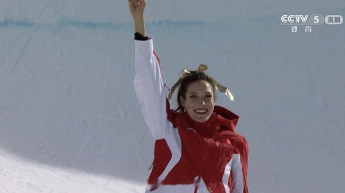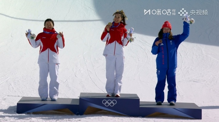 颁奖仪式上,谷爱凌头戴金色冠军头纱,唱国歌并展示微笑金牌,随后谷爱凌和李方慧一同身披国旗庆祝。谷爱凌心态太强大了谷爱凌金牌