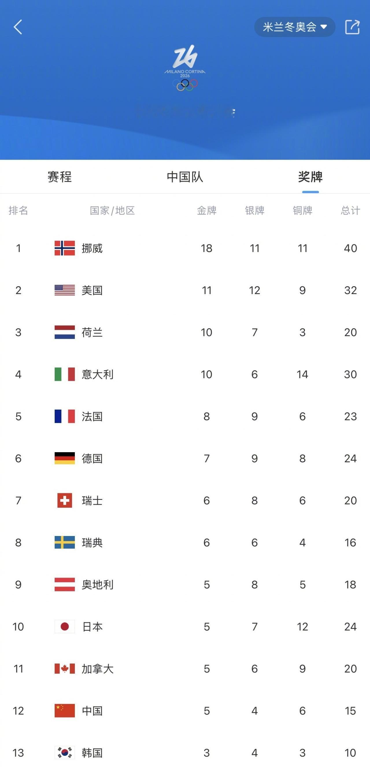 米兰冬奥会奖牌数追平北京冬奥会【收官!中国队5金4银6铜创境外参赛最好成绩 奖牌数追平北京冬奥会】直播吧02月22日讯 随着中国代表团本届冬奥会最后一个参赛项目男子四人雪车的结束,中国队结束了米兰冬奥会所有的比赛,最终获得5金4银6铜的成绩,刷新冬奥会境外参赛最好成绩,追平上届北京冬奥会15枚奖牌纪录!谷爱凌金色蝴蝶结 谷爱凌金牌