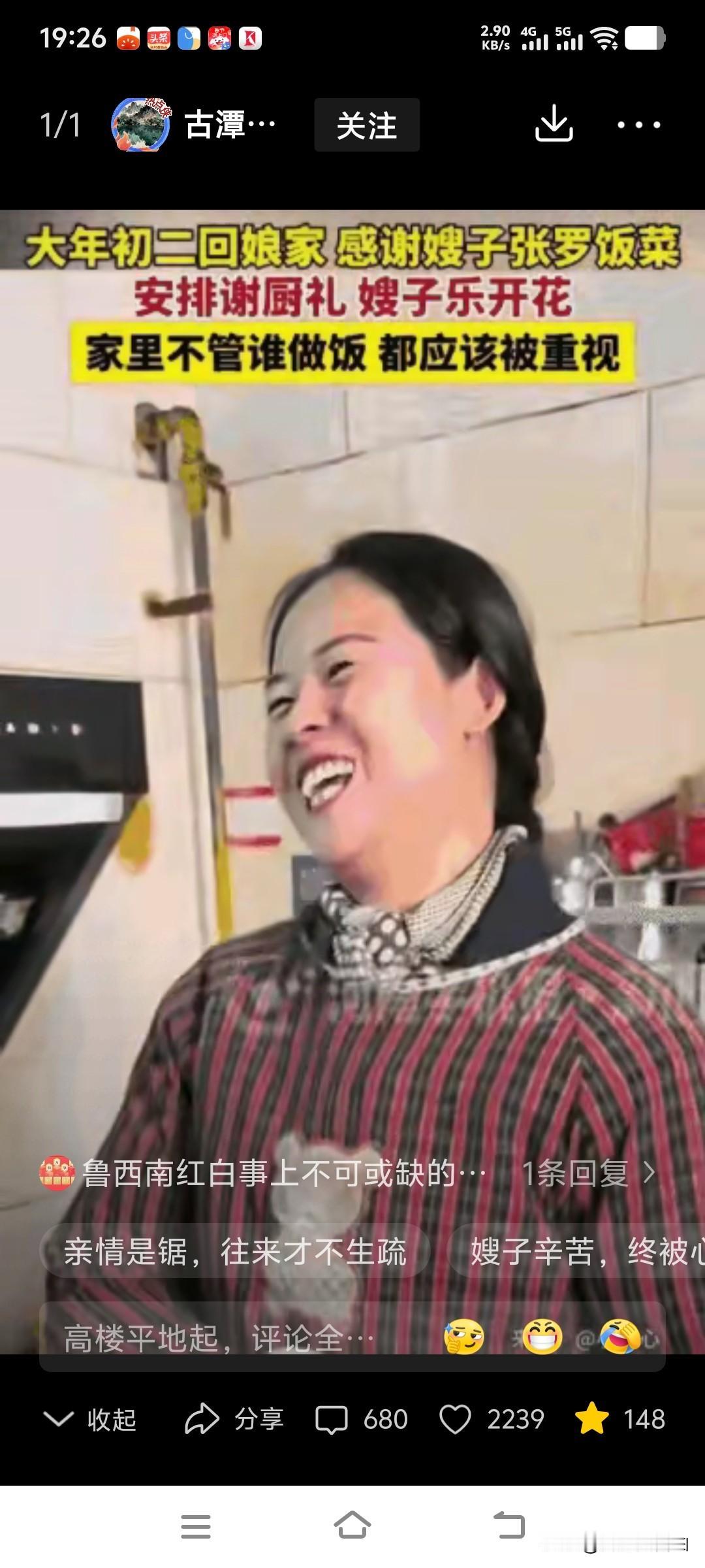 “建议全国普及!”河南,大年初二女子带着老公孩子回娘家过年,进屋后就发现嫂子早早就在后厨忙碌起来,为他们做饭,女子觉得,自己不该理所当然的吃饭,于是准备了一份谢厨礼,当他们端到厨房时,嫂子笑着笑着就快哭了。 大年初二回娘家是传统习俗,后厨却是最辛苦的角落,嫂子从清晨就开始择菜洗菜、煎炸烹煮,一个人张罗一大桌饭菜,忙得脚不沾地,连坐下歇口气的时间都没有。 女子看在眼里满是心疼,她深知姑嫂之间没有理所当然的付出,娘家的团圆饭,从来不是嫂子一个人的责任,懂得体谅家人辛苦,才是亲情最该有的模样。 她准备的谢厨礼没有贵重礼品,只是一个饱含心意的红包,搭配几句暖心话语,只为告诉嫂子,她的忙碌与付出,全家人都真切看在眼里、记在心里。 嫂子接过谢厨礼的瞬间,脸上的笑容瞬间绷不住,笑着笑着眼眶就红了,长久以来的默默付出被看见、被认可,所有辛苦都在这一刻化作暖心的泪水。 现实中太多家庭都有这样的情况,姑姐回娘家享福,嫂子独自在后厨操劳,家人习以为常,没人主动搭把手,默默付出的人最容易被忽略寒心。 据中国家庭研究院春节调研数据显示,超三成家庭春节矛盾,源于家务分工不均,女性承担了90%以上的待客做饭任务,付出却很少被家人认可。 姑嫂关系是娘家和睦的关键纽带,从来不是一方一味付出、一方坦然接受,互相尊重、彼此心疼,才能让亲情始终温暖,让娘家永远是暖心避风港。 这段视频之所以迅速刷屏全网,正是因为戳中了千万家庭的真实痛点,大家都向往这种不道德绑架、懂得感恩的家庭氛围,共情力直接拉满。 网友纷纷喊话建议全国普及,这份谢厨礼的价值从不在金额多少,而在于一份实打实的尊重,让辛苦付出的家人,感受到最真切的暖意与认可。 嫂子不是娘家的外人,她是撑起家庭烟火气的重要家人,放弃休息时间忙碌操劳,本该被温柔以待,而非被当成理所应当的家务承担者。 那些漠视嫂子付出、把其当免费保姆的家庭,终究会消耗掉亲情的温度,家和万事兴从不是口号,而是家人之间互相体谅、互相成全。 河南这名女子的做法,彰显了最通透的家风,不把亲情当理所当然,用小小的心意回馈付出,这才是春节团圆最该有的温暖模样。 春节的意义从不是一桌丰盛的饭菜,而是家人围坐、彼此心疼,看见每个人的付出,珍惜每份相守的温情,这才是过年最珍贵的意义。 各位读者你们怎么看?欢迎在评论区讨论。