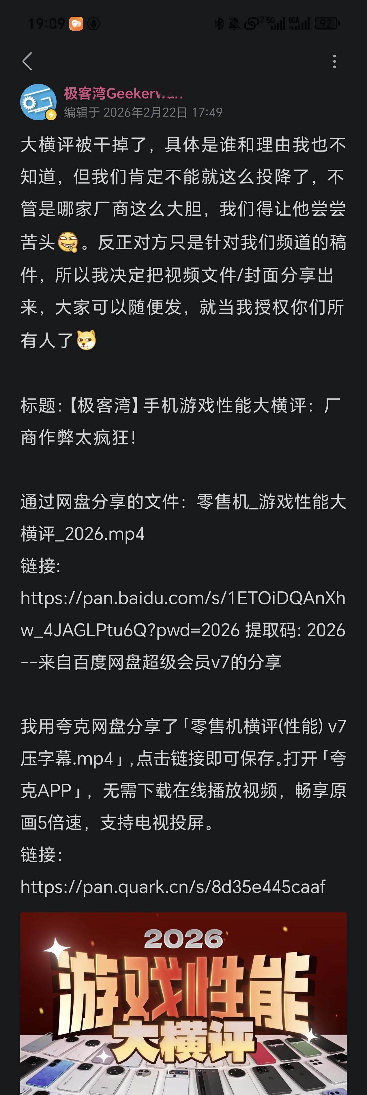 有博主发布的吐槽厂商特调作弊的视频无端被下架,这表明个别厂商内心极度惶恐,只能借助这种上不得台面的手段来消除负面信息。 我记得此前也有网络专家发布视频揭秘,个别手机厂商为使跑分和续航排名更靠前,会对媒体机进行特调,甚至还能通过远程控制对零售机实施特调。总而言之,个别厂商为了提升销量,可谓不择手段。