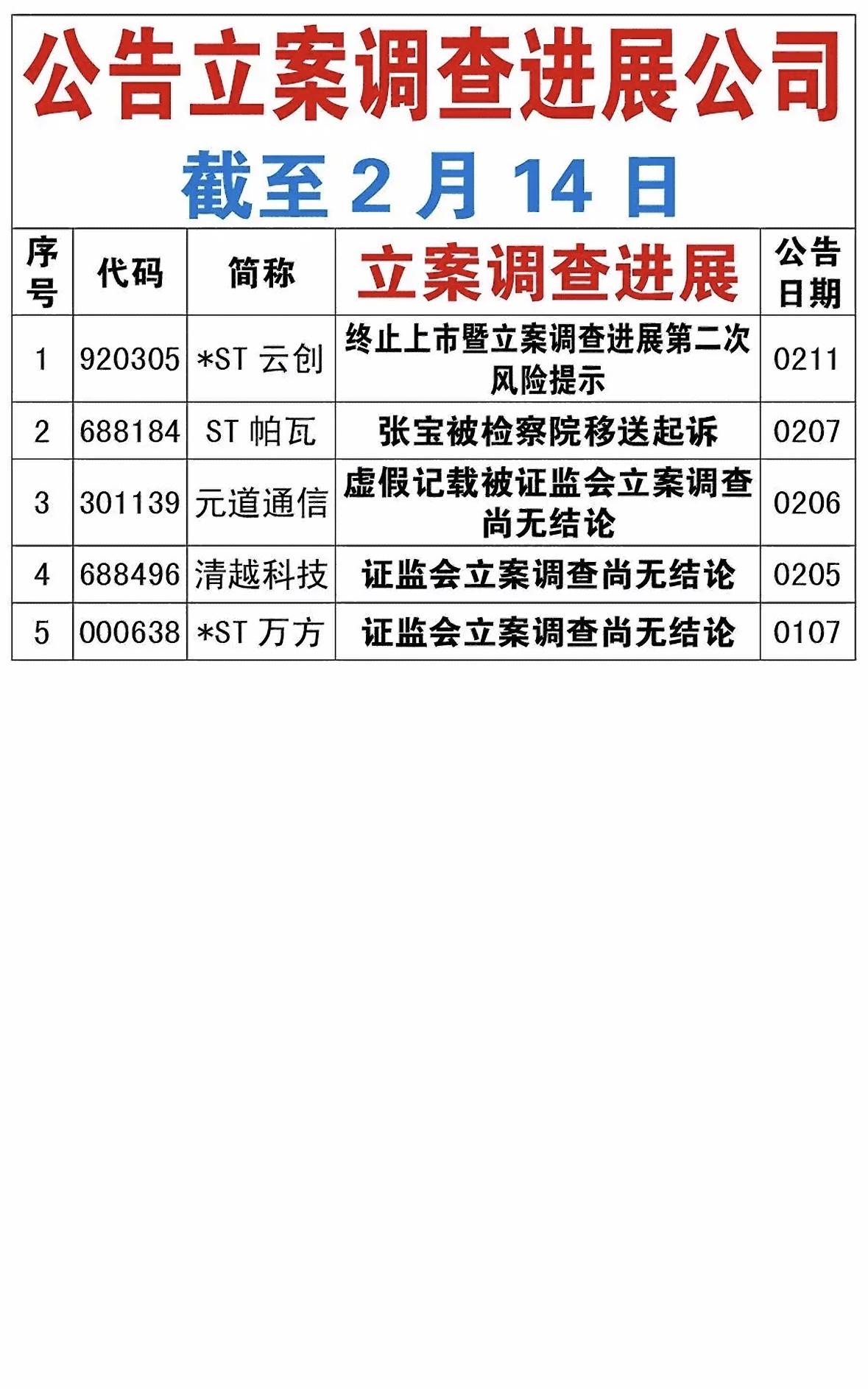 2月14日的立案调查进展公告,揭开了五家涉案公司的神秘面纱。就拿*ST立方来说,曾经可是靠着AI服务器概念,股价从3元狂飙到15.26元,涨幅达400%。谁能想到,这竟是一场财务造假的闹剧,虚增5亿营收,最终被官宣退市,股价暴跌超87%,让无数跟风的散户踩了大雷。它曾用名太空板业,最初做建材业务没啥起色,2020年转型智能软件和数字化服务,2023年成立子公司搭上AI风口。另外,荃银高科因涉嫌信息披露违法违规被立案,股民索赔也已启动。这些公司的案例,给投资者敲响了警钟。