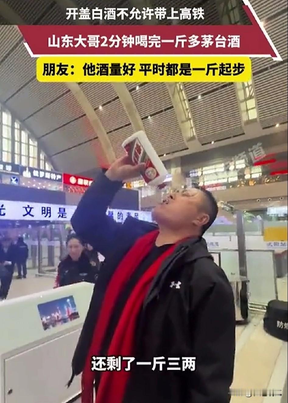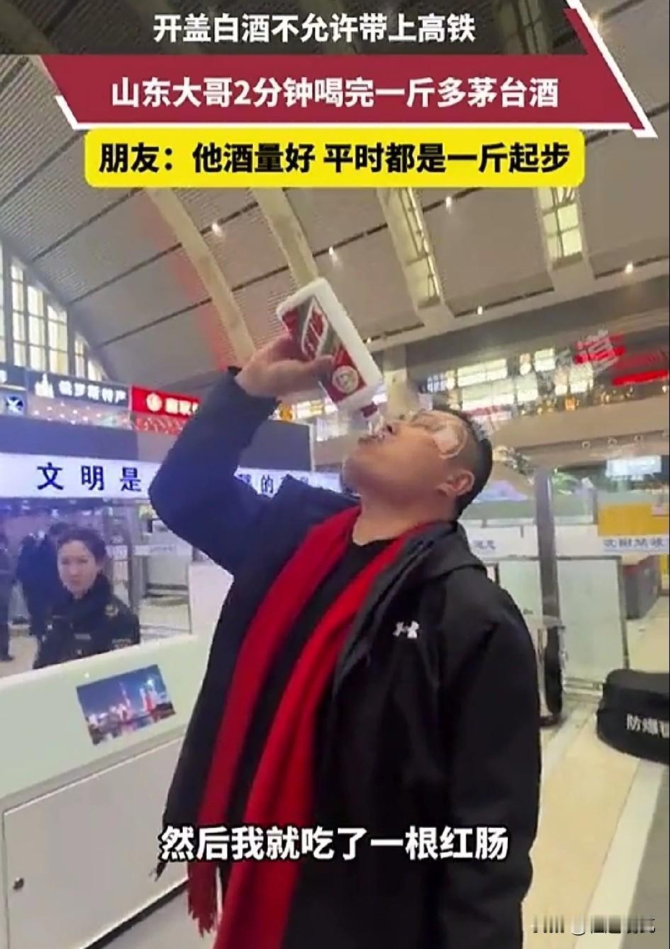 看到一个大哥,因为火车上不让携带开封的白酒,一口气竟然把一斤三两的茅台哐哐哐直接炫进了肚子里。 有人认为这种规定太死板,可以让乘客尝一口确认是白酒就可以,但他们没有想到这种开封的白酒有着巨大的安全隐患。 如果在火车上由于晃动而散落,那么,对于车厢里相对封闭的空间,安全隐患还是非常大的,如果掺杂了高浓度的酒精那么危险系数就更大。 所以为了大家的安全,还是要把隐患降到最低!