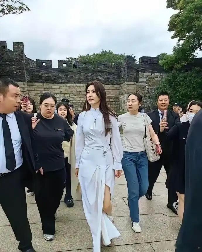 张天爱跟素人合影,胯真的好宽,大宅院似的
