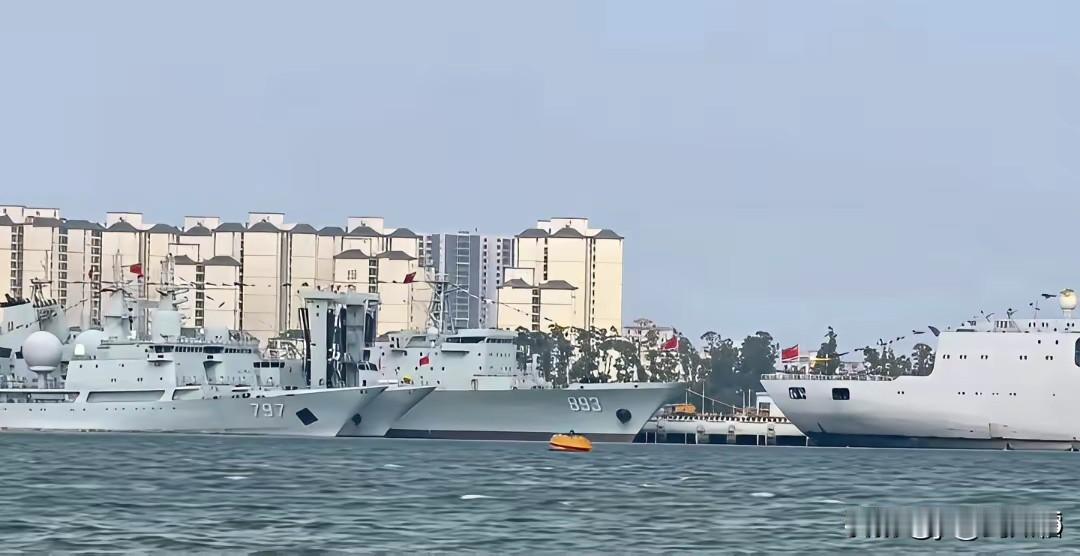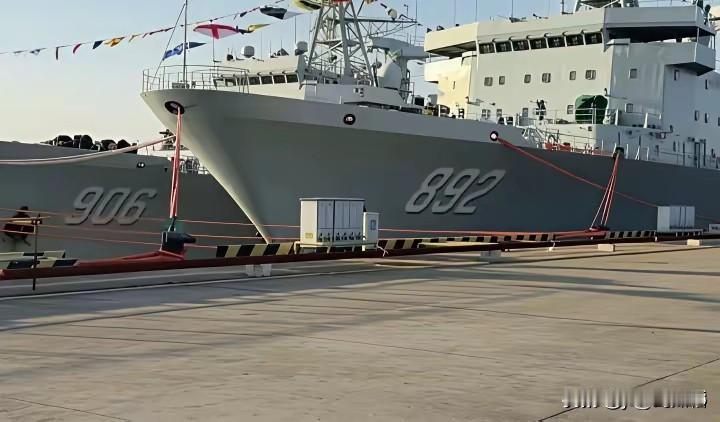 特大喜讯:补给舰队再添生力军! 近日,两艘刚刷了舷号的903A型综合补给舰公开露面,这是自2019年以来,新批次的903A再一次开始大批量建造,其数量有可能达到10艘。舷号892的补给舰和906号洪湖舰并排停靠在码头。而另外一艘舷号893的903A型则和一艘815A级电子侦察船797号天枢星舰以及另外一艘看不到舷号的815A型停靠在一起。由于906号洪湖舰和797号天枢星舰全部隶属于南部战区海军,所以这两艘刚刚露面的综合补给舰也应该是隶属于南部战区海军。综合补给舰是中国海军的一大短板,尽管这些年来在数量上有很大增加,但和海军飞速发展的作战舰艇相比,数量上仍然严重不足。901型大型快速补给舰主要配备航母编队基本保持一个航母编队一艘901型的配置。而908型只有一艘,且服役时间较长。904型属于岛礁补给舰,不具备远洋补给能力。中国海军的主力补给舰只有3艘901型(1艘未确定服役)和9艘903/903A型。按照每5艘主力舰配备一艘903A的配置来看,903系列的数量至少要达到20艘以上才行。如果新批次的903A建造数量能达到10艘以上,将极大缓解目前海军在补给舰上的数量不足所带来的尴尬。 相比901型5万吨级的排水量,不到2.3万吨的903A使用起来更为灵活,可以去亚丁湾护航,可以组成小编队远洋巡航、出访,也可以编入航母编队补充901型数量上的不足。在新一代综合补给舰设计建造前,903系列将和901型共同组成解放军海军的远洋作战补给体系。