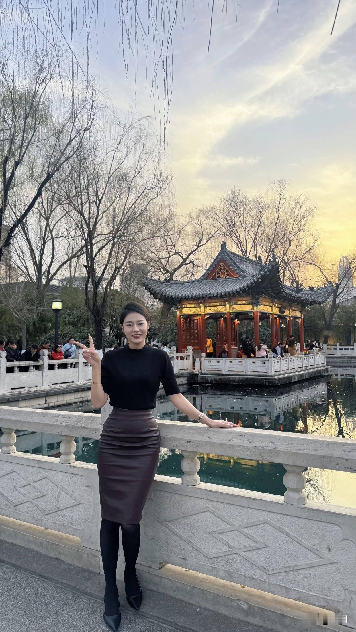 优美的大曲线身材是怎样练的?打卡古风亭台,优雅黑裙与古典园林的完美融合