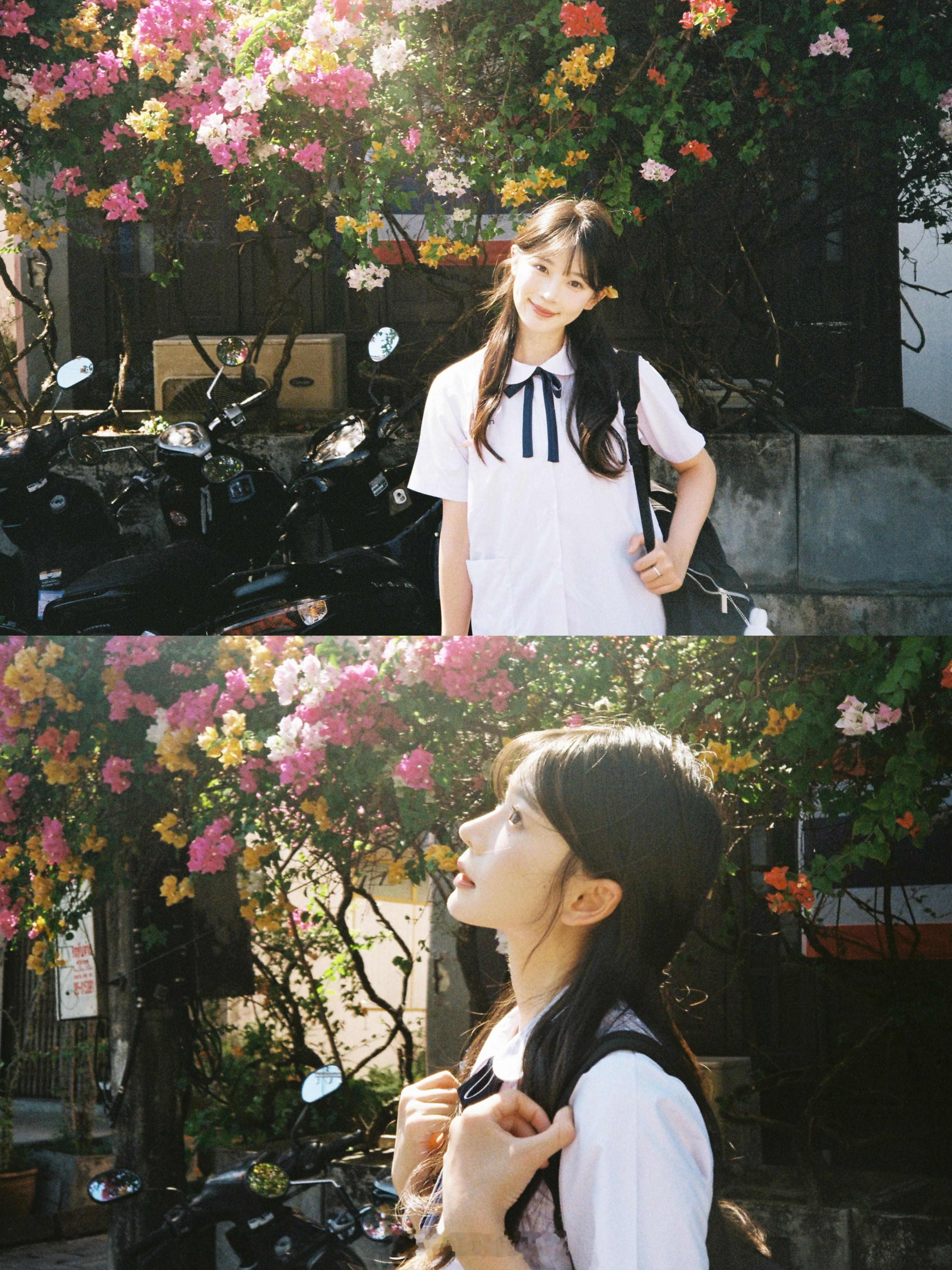 园林清韵青瓦飞檐映着澄澈流水,繁花缀满枝头,晕染出江南园林的雅致。她笑意清