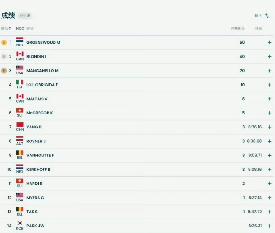 2026年米兰冬奥会速度滑冰女子集体出发决赛: 中国选手杨滨瑜获得第七名,创造中国选手在女子集体出发冬奥会历史最好成绩!🎉 荷兰选手格勒内沃德获得金牌,荷兰这届大道和短道两开花