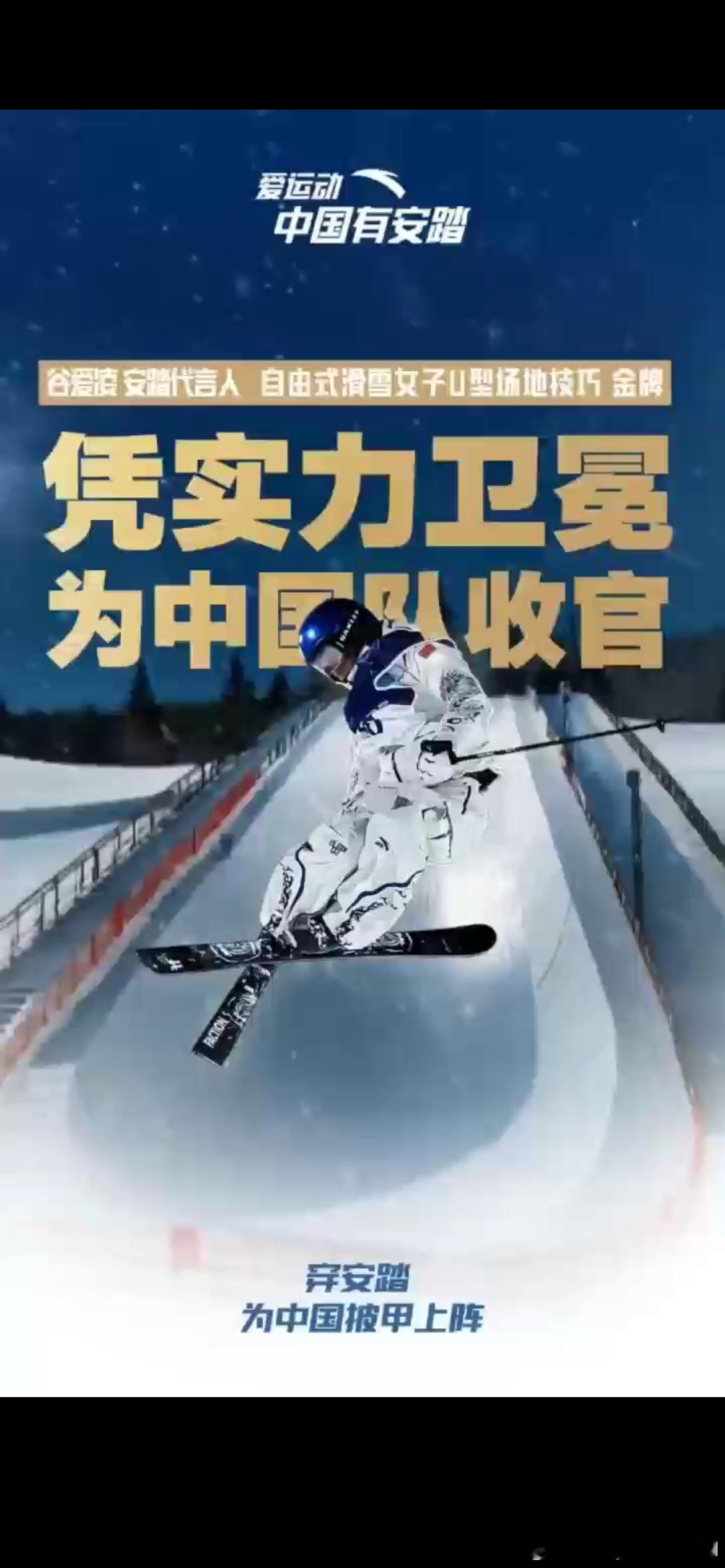 谷爱凌U池卫冕成功 实力无需多言!谷爱凌身穿安踏比赛服,在冬奥U型池决赛中后两滑再次上演“一跳定乾坤”稳稳落地——这些完美动作背后,是安踏「炽热科技」的硬核支撑:±1℃温控让运动员在零下赛场保持最佳状态,40%+缓震科技吸收每一次落地冲击。每一跳都有数据支撑,每一步都有科技护航。恭喜谷爱凌夺得金牌,安踏与你共享荣耀时刻!