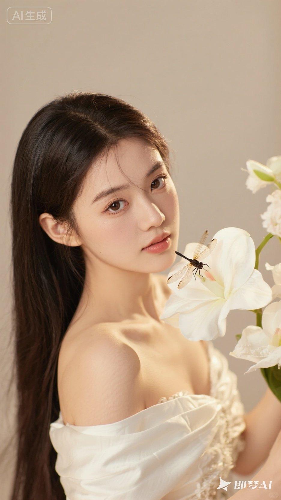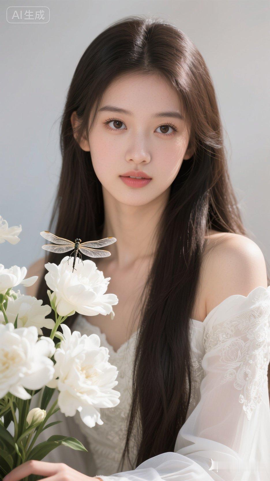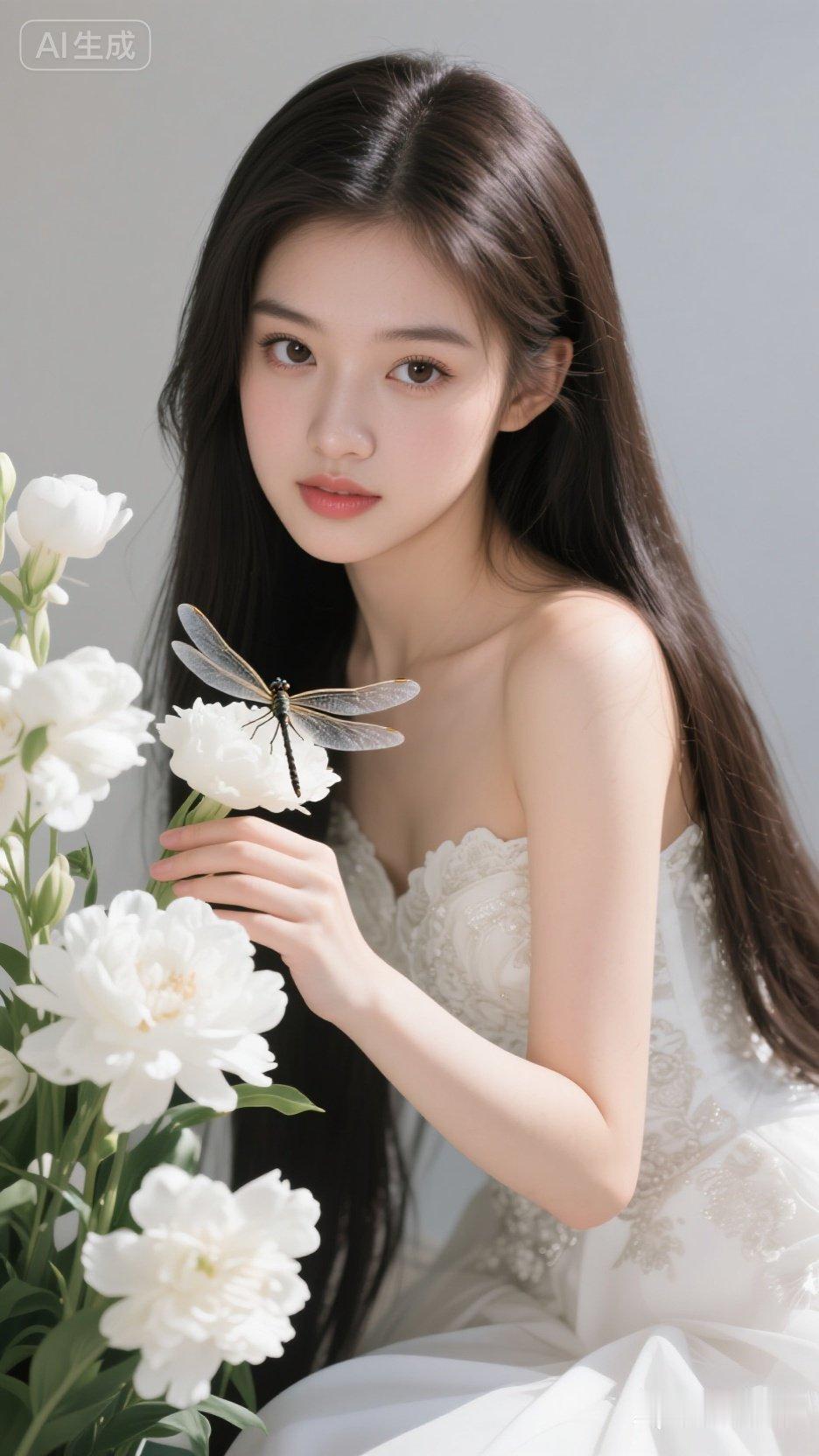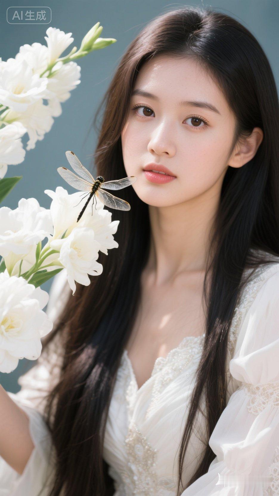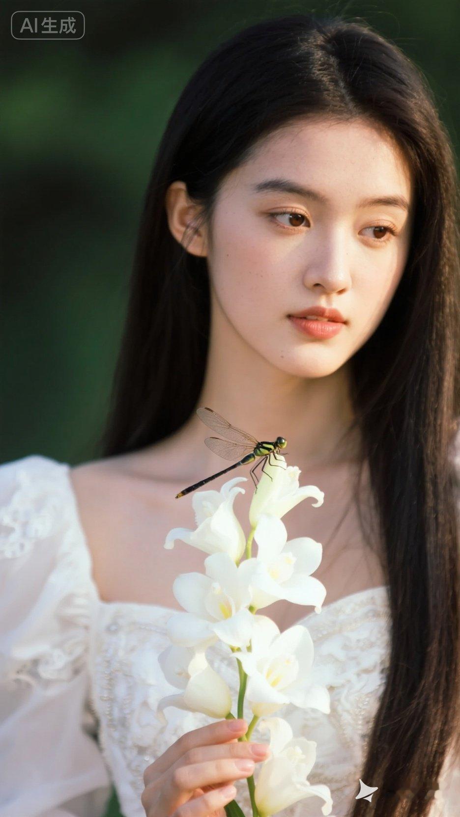 梦幻少女与蜻蜓的邂逅,唯美花海中的清新时刻。