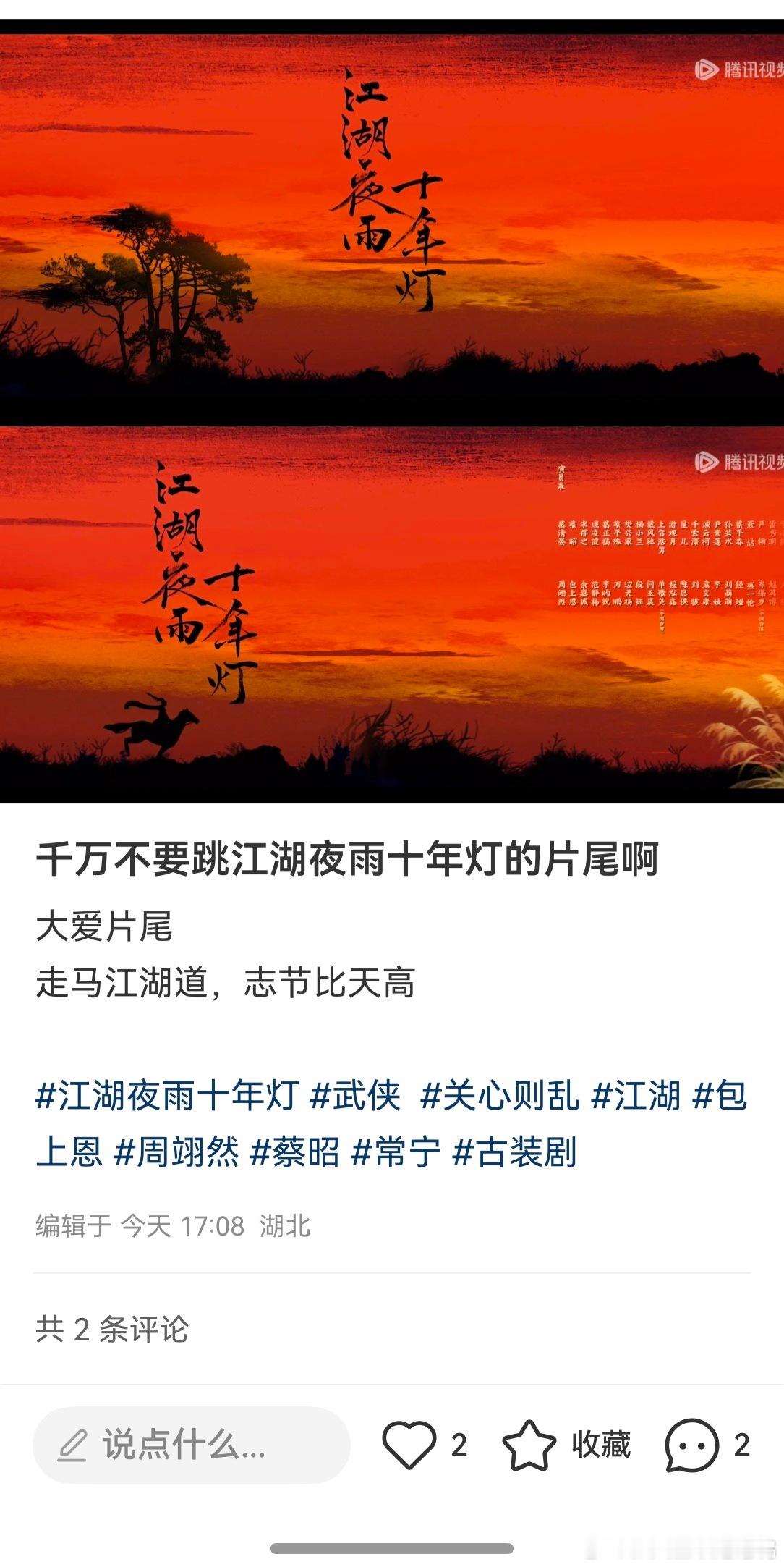 没人懂这个片头片尾吗《江湖夜雨十年灯》首播,我直接原地沦陷,颜值、剧情、CP全都在线,节奏也不磨叽,越看越上头,看完一集就开始期待下一集江湖夜雨十年灯