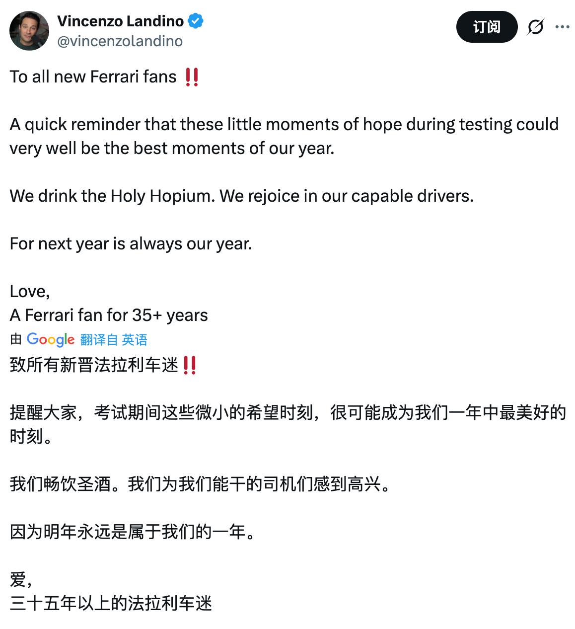 2026赛季极大可能属于法拉利,冬测之王上线了。 过去的一个赛季未拿到一个分站冠军,今年肯定不会了。乐扣和7冠王的丰富经验加上法拉利的独家技术,争冠都有可能。