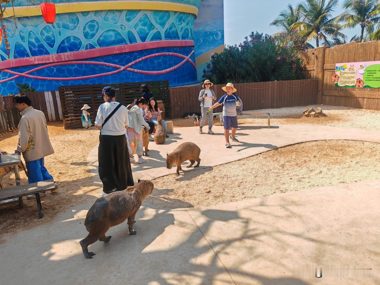 现在的生意那么好做吗?随意圈一块面积不大的地,养上几只小动物,就等着小朋友们排着队来投喂赚钱。 前天去一个村庄,用网搭建一个小空间,里面养着几只毛绒绒的小鸡仔和鹦鹉,入内投喂18元/位,小孩子们见了欢喜的不得了。 今天去海洋乐园,里面的好多动物都可投喂,最低38元/位起,有一处里面养了几只水豚和小猪,把水豚叫卡皮巴拉,小孩一说起卡皮巴拉可爱了,进去投喂一次要109元。笔者还是头一回知道卡皮巴拉原来是这么个玩意。 诶,想想农村小孩喂鸡喂猪,可不乐意了,城市的孩子则抢着闹着花钱来喂,还可高兴了。
