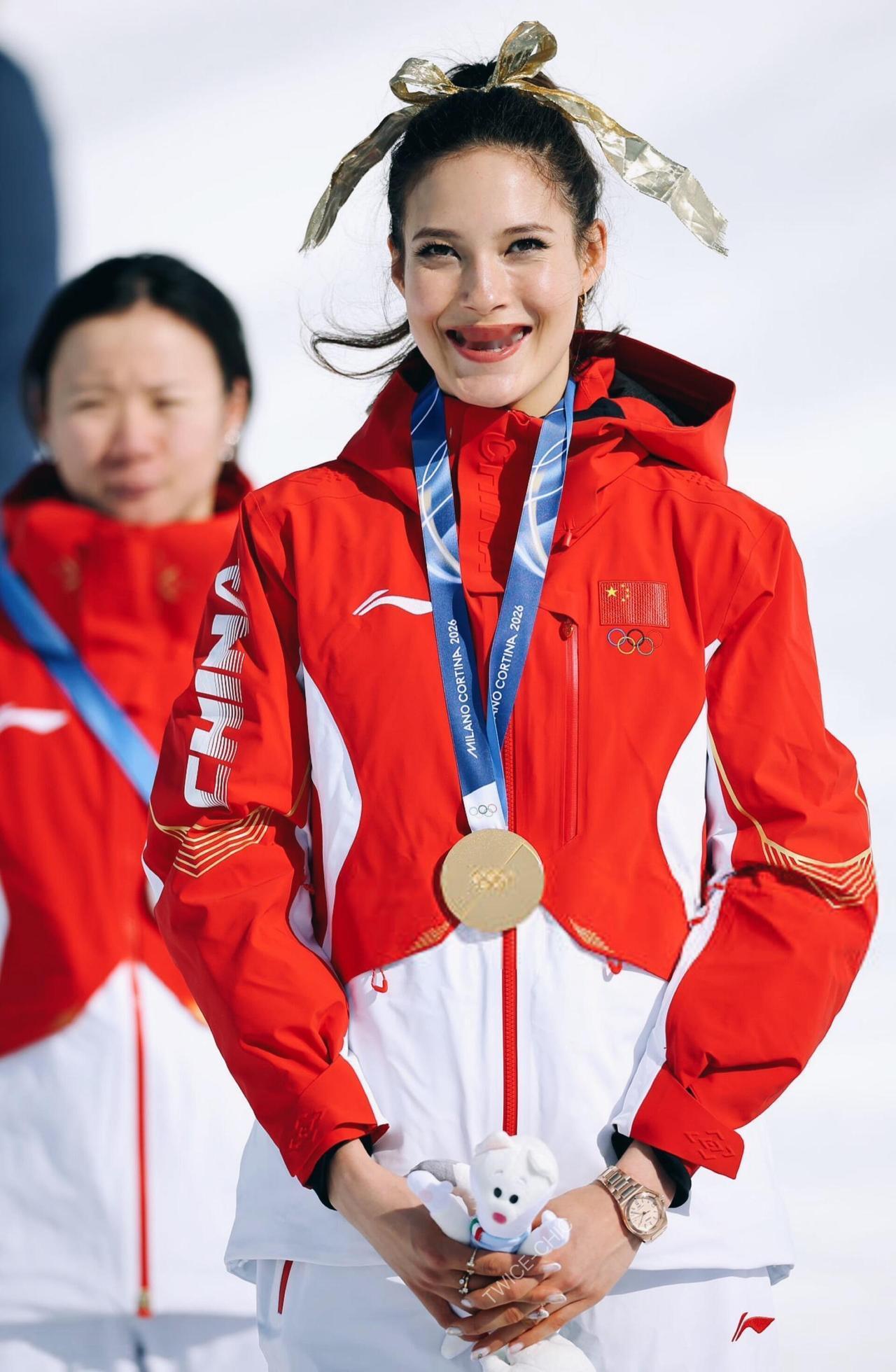 她每次颁奖前都火速撸个妆[大笑]这蝴蝶结绑出了桀骜不驯,像一双金色的翅膀,内心强大且柔软的女生!每一张照片都自信、优雅、充满生气 ,好迷人!她的采访没有放完,因为她全程都在自己夸自己,哈哈哈。她真的太棒了,两届冬奥,3金3银,上场就有牌,人怎么可以争气成这样啊,总是给人惊喜,让人觉得她就是这样稳。 谷爱凌夺得米兰冬奥会自由式滑雪女子U型场地技巧决赛冠军!她每次比赛阳光的心态比金牌更打动我、感染我,金牌,我们学不了,但每次都享受比赛的心情,值得学习。 我的朋友谷爱凌,真的太全面太完美了[赞]谷爱凌 金牌
