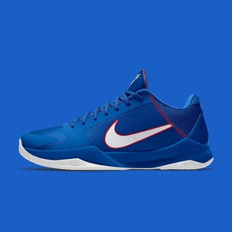 即将推出的 Nike Kobe 5 Protro “Dodgers” ,鞋身以Game Royal(耐克官方对一种深蓝色的命名,偏向亮蓝)为主色,辅以University Red(大学红)点缀和白色鞋底,呼应道奇标志性配色。棒球风格的红色缝线贯穿鞋舌和鞋跟。