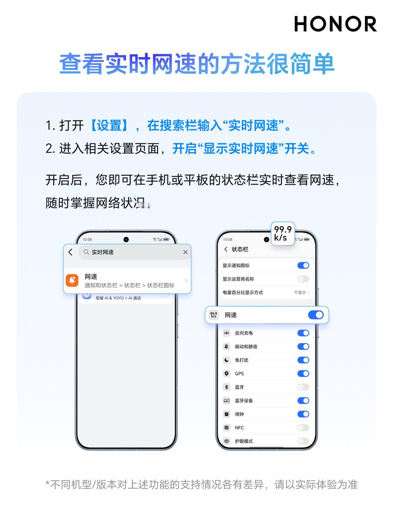 小伙伴们使用智能手机流量上网的时候,如何才能够做到自己掌控网速、流量消耗记录的呢?其实利用荣耀MagicOS,就可以轻轻松松对流量进行管理,例如荣耀手机如何显示实时网速,通过荣耀客服的一则图文信息,就可以将这个功能介绍的明明白白。 查看实时网速的方法很简单,荣耀MagicOS系统,打开设置>在搜索栏输入【实时网速】,然后进入相关设置页面,开启【显示实时网速】的开关,就可以在荣耀手机、或者荣耀平板上面的状态栏,实时查看网速的当前消耗情况,还能够查询流量偷跑。 小伙伴们启用,荣耀MagicOS系统查看实时网速,方法还是蛮简单的,好多功能还可以通过玩机技巧APP去学习。现在只需关注 @超逸谈科技 并转发此微头条,2026年02月24日,将由 选出1位粉丝包邮送出暖暖杯55度礼品装,说不定下一个中奖的就是你哟抽奖详情